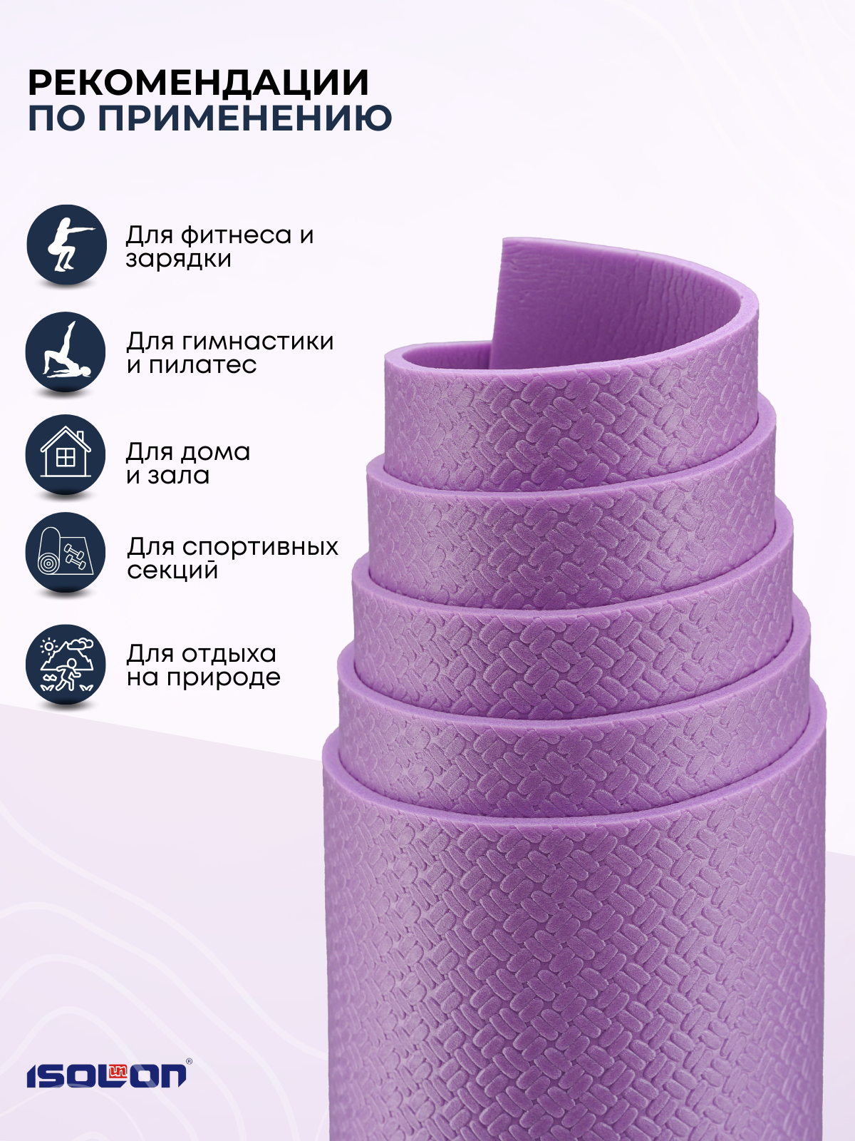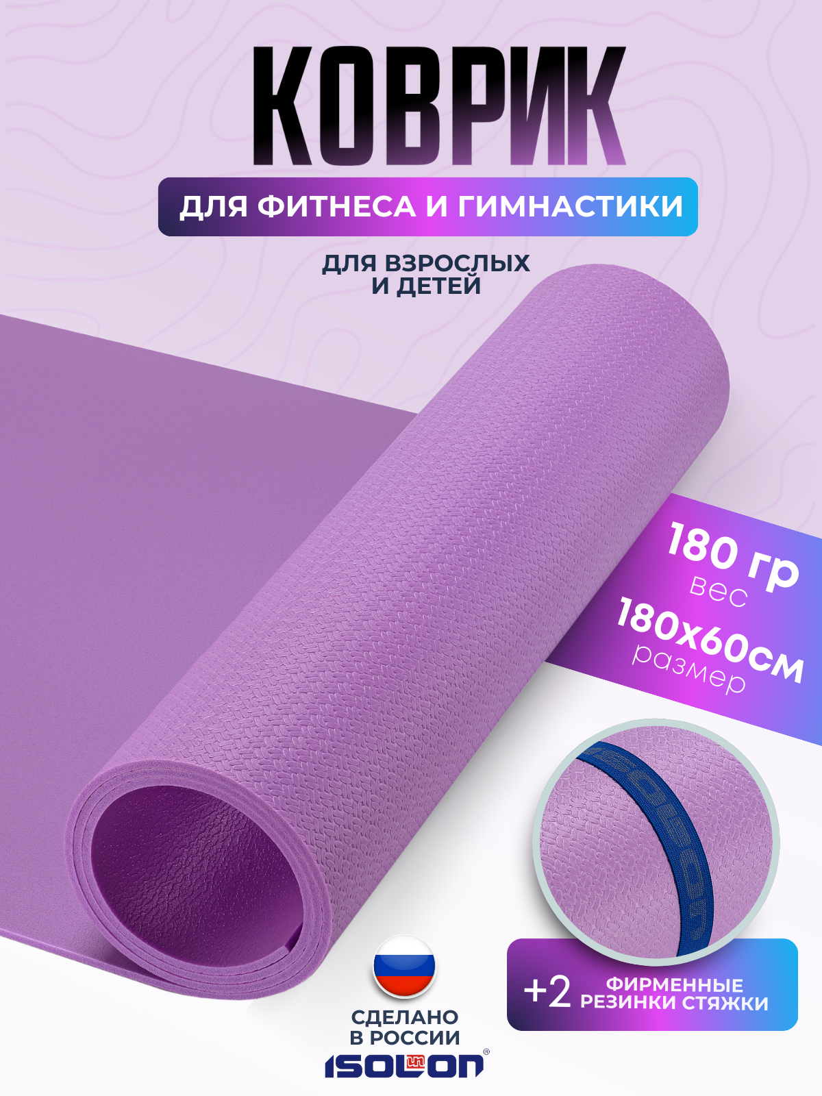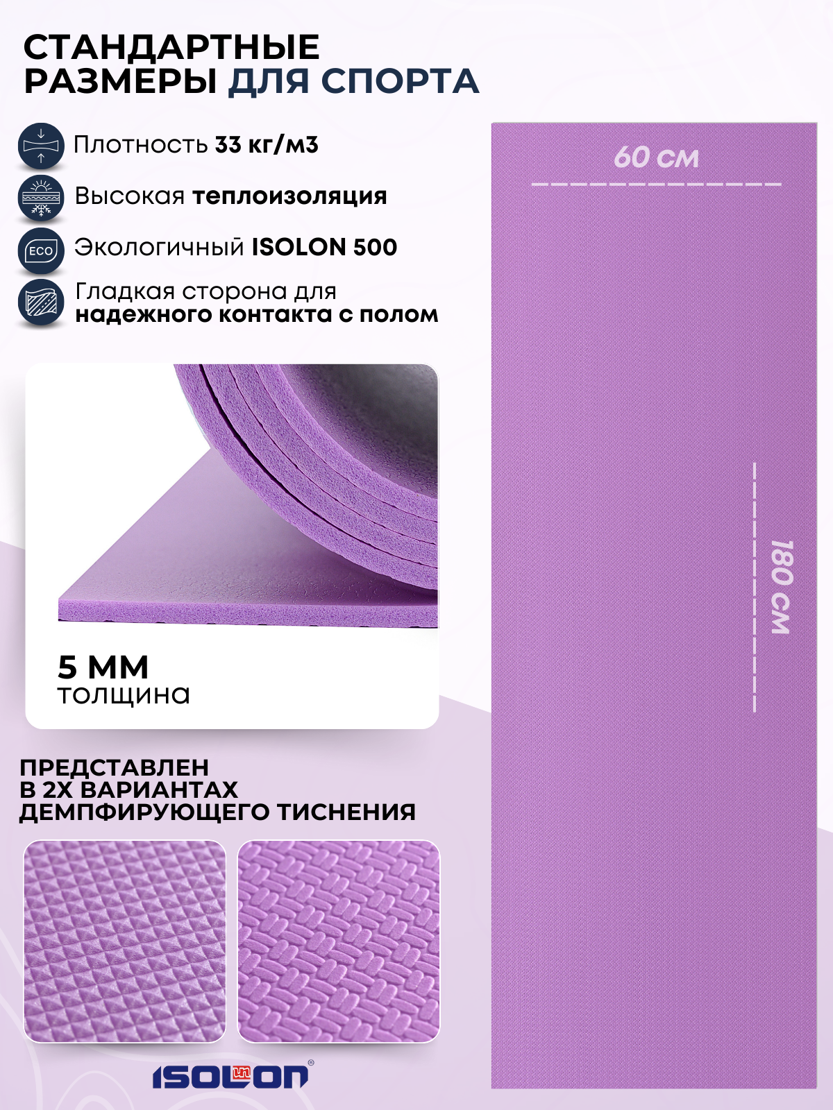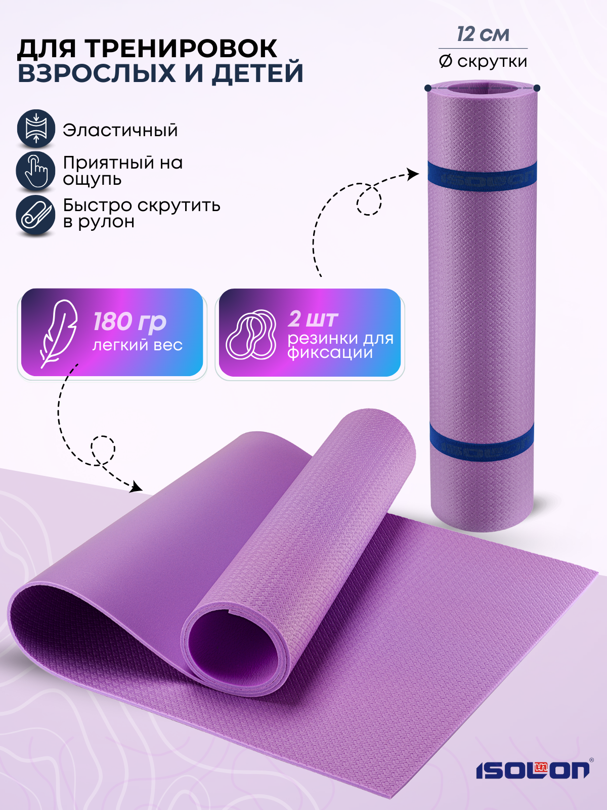 СохранитьКоврик спортивный для зарядки и гимнастики Isolon Sport 5, 180х60 см лавандовый интересное: