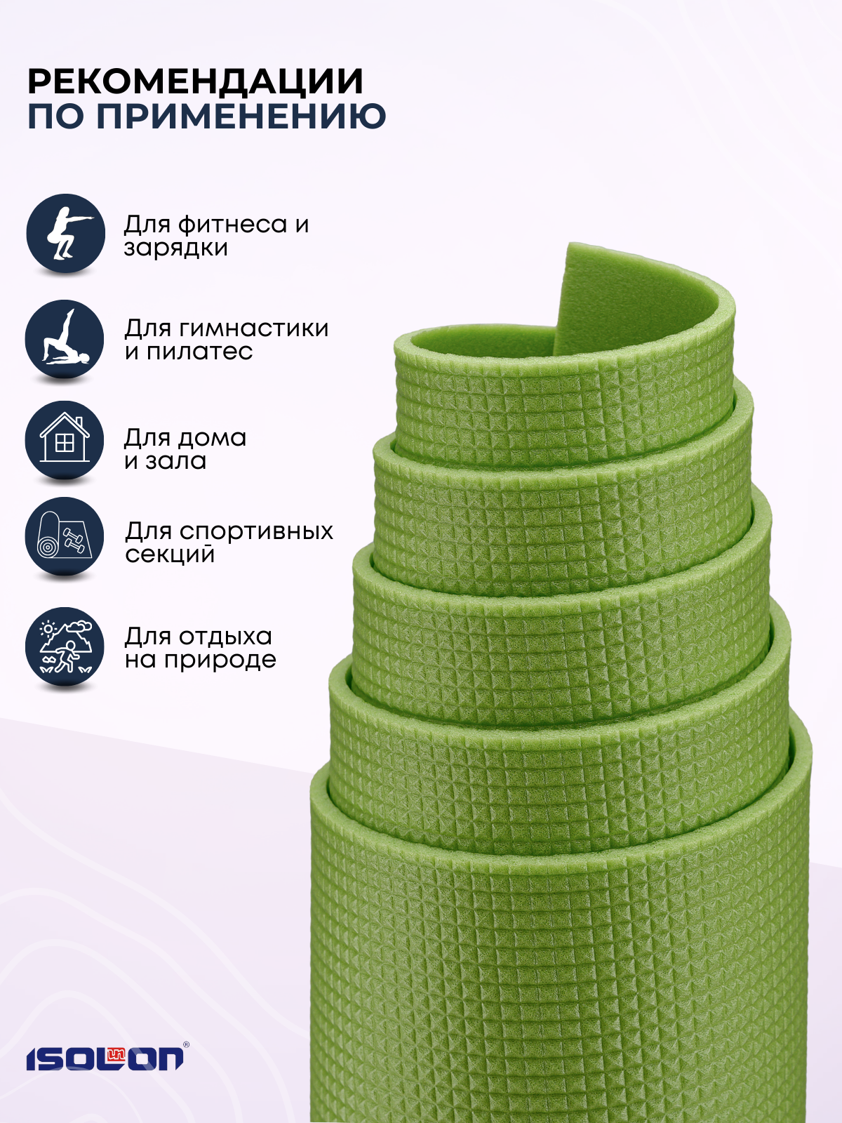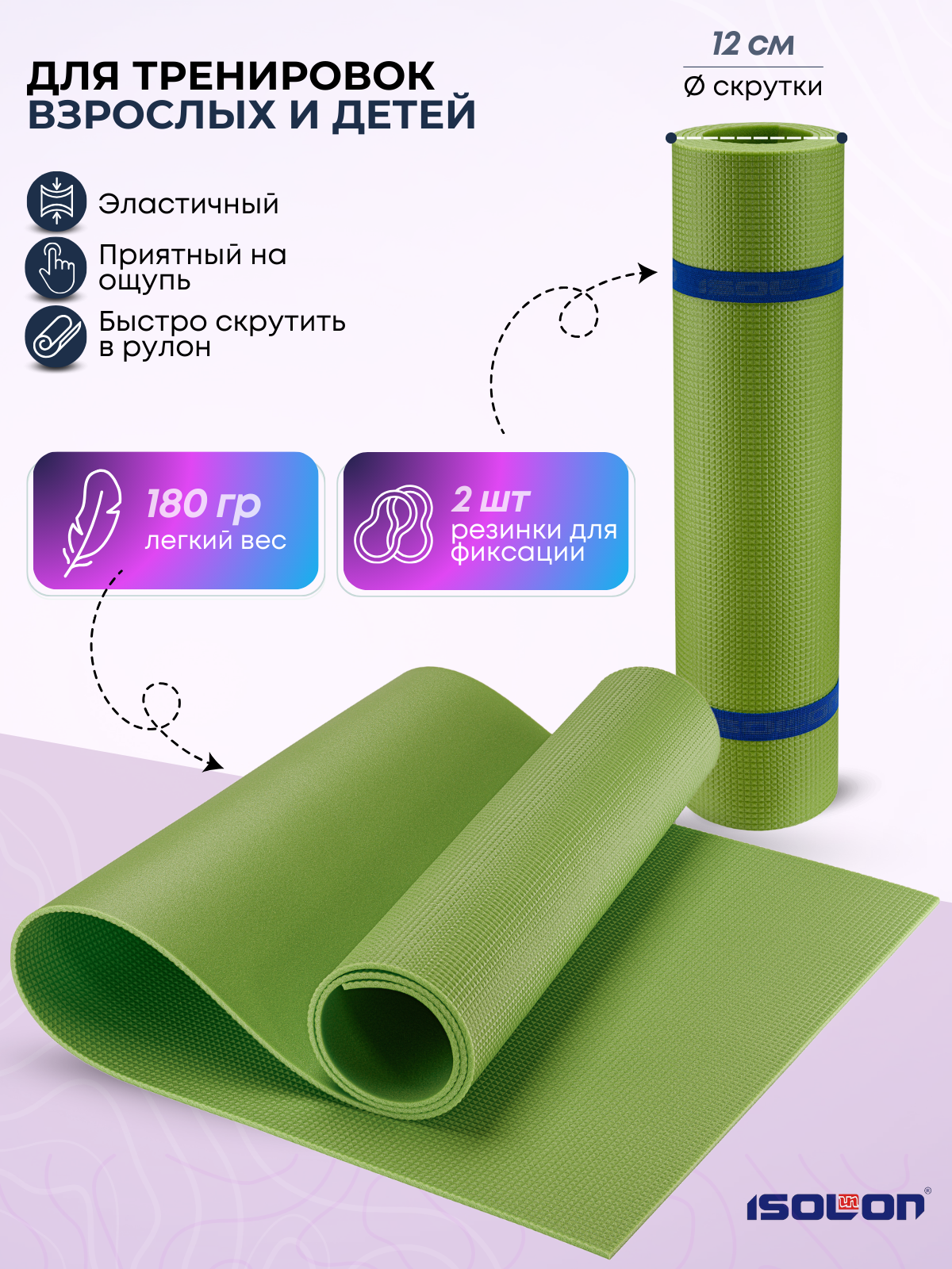 Коврик спортивный для зарядки и гимнастики Isolon Sport 5, 180х60 см лавандовый