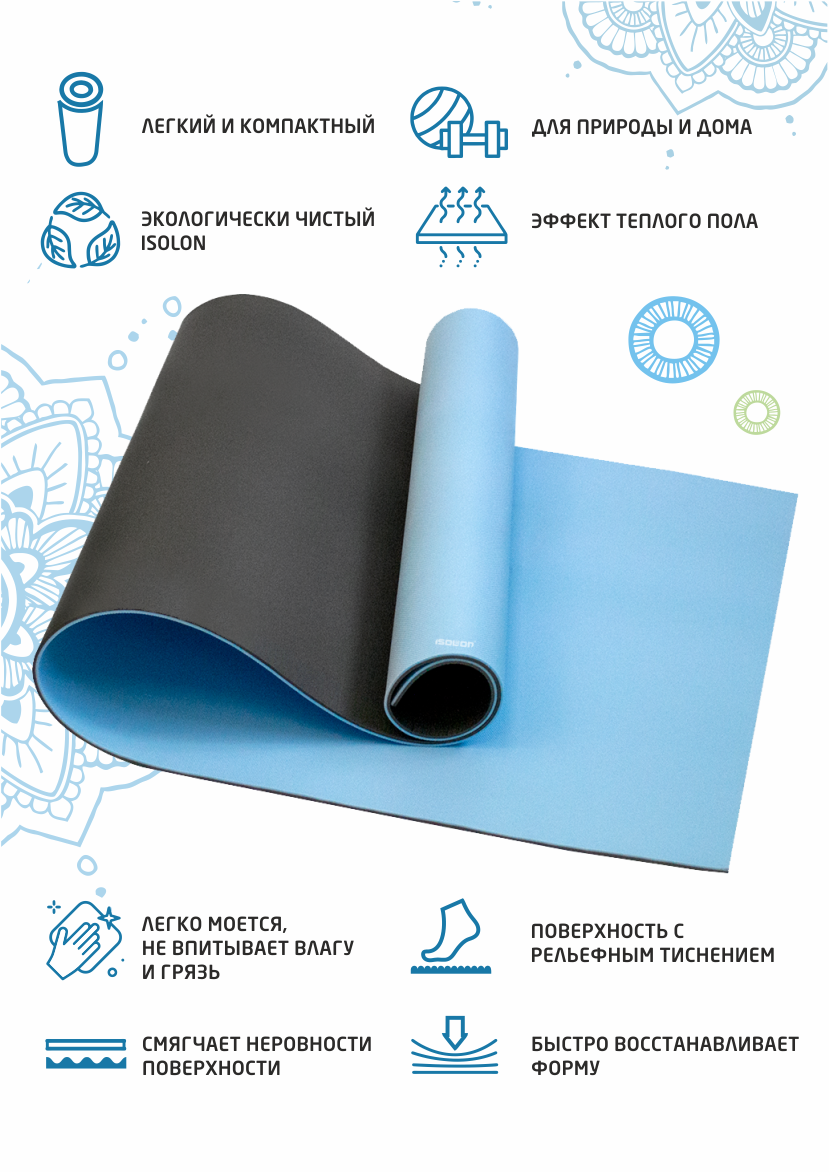Коврик спортивный для йоги 180 х 60 х 0,6см голубой/серый (высокая амортизация, нескользящий) интересное: