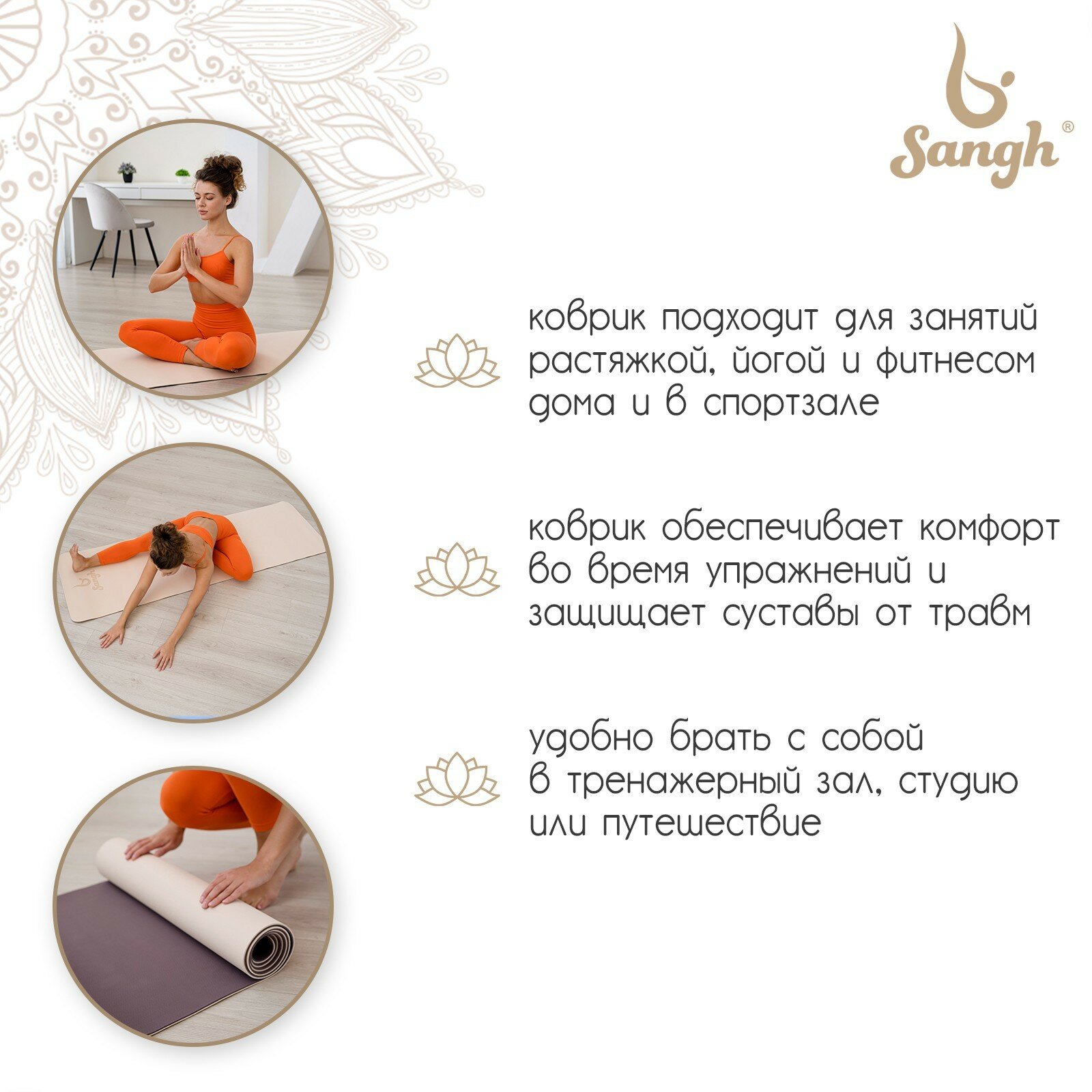 СохранитьКоврик для йоги Sangh, 183х61х0,6 см, цвет бежевый/коричневый (комплект из 2 шт) интересное: