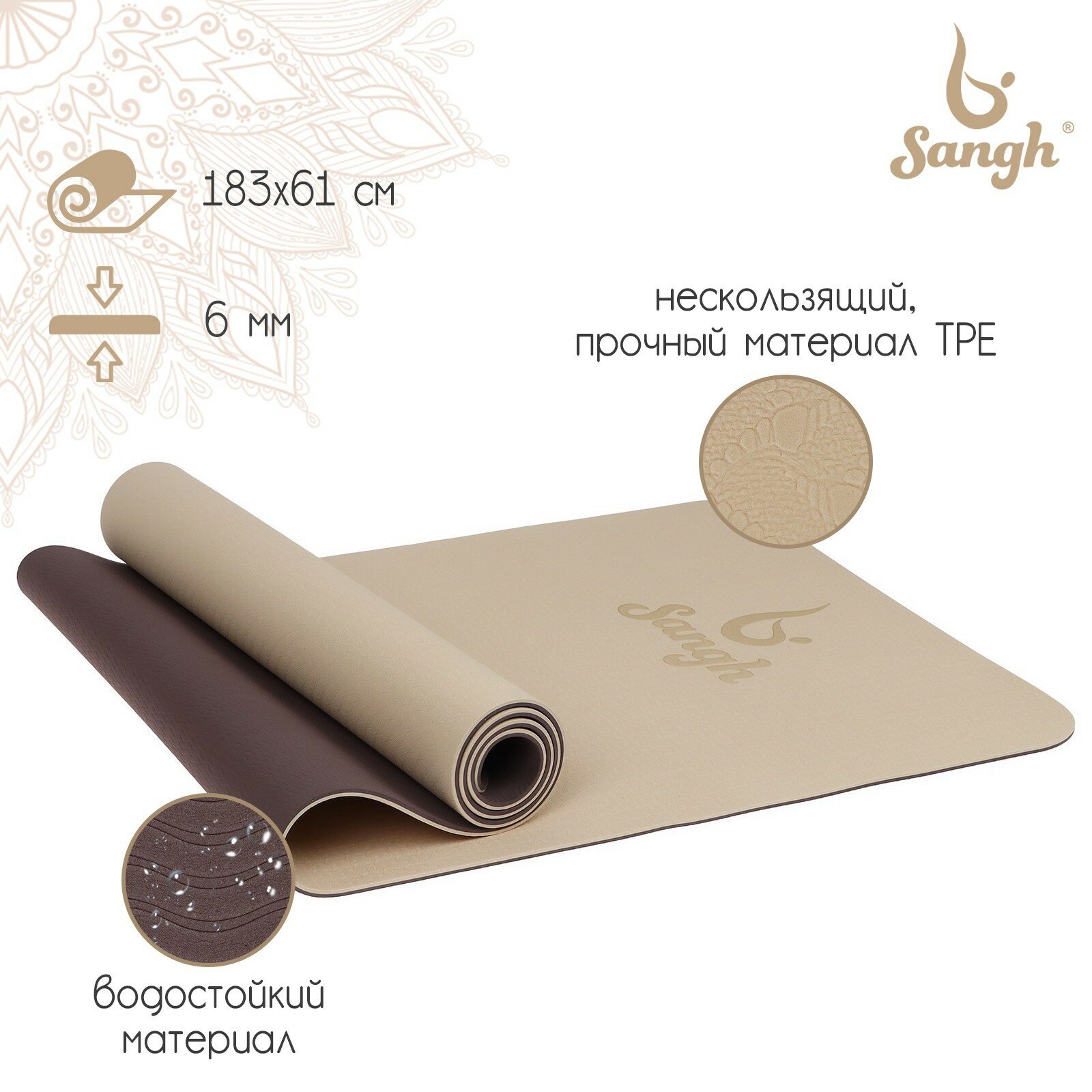 Коврик для йоги Sangh, 183х61х0,6 см, цвет бежевый/коричневый (комплект из 2 шт)