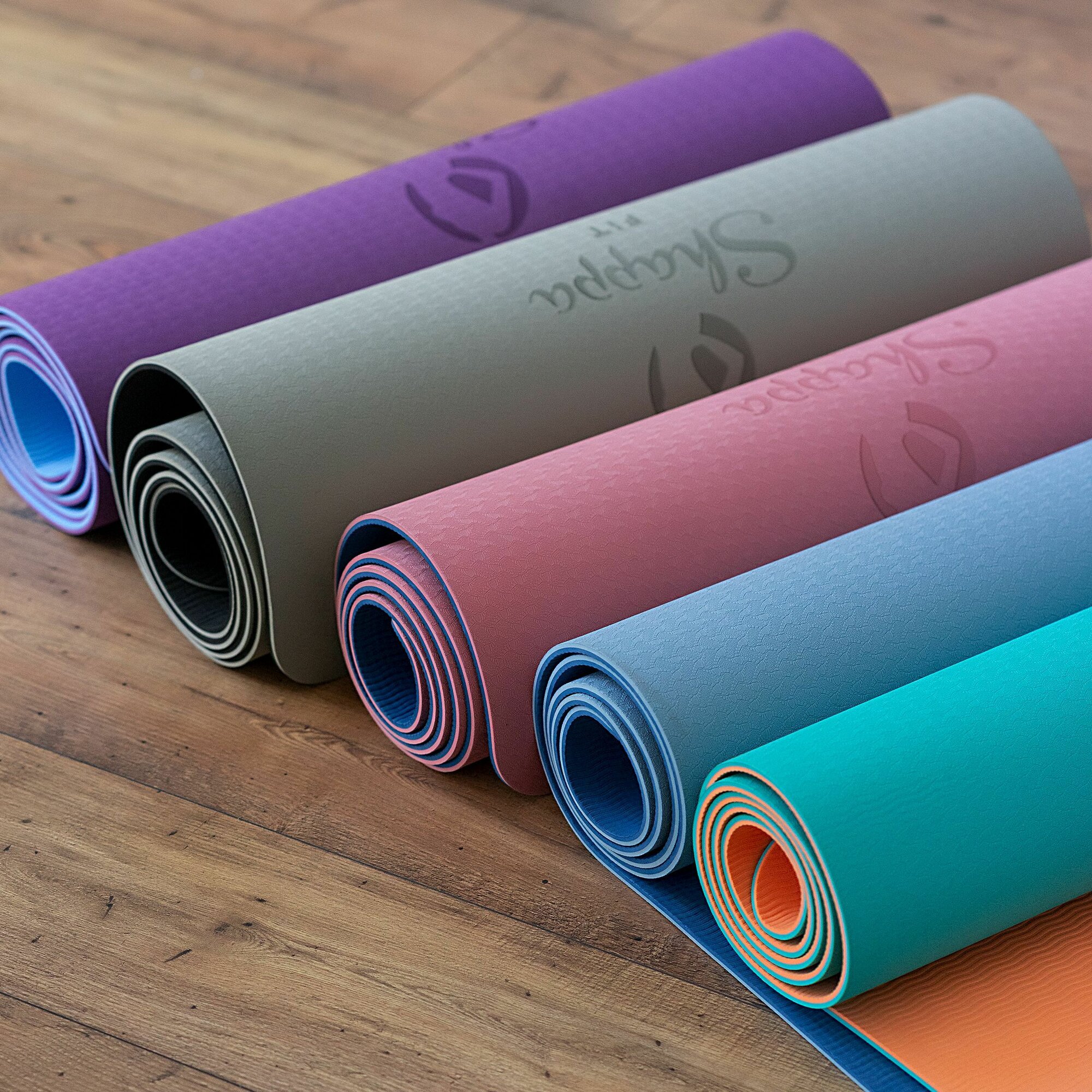 Коврик для йоги Shappa Fit бирюзово-оранжевый, коврик для фитнеса