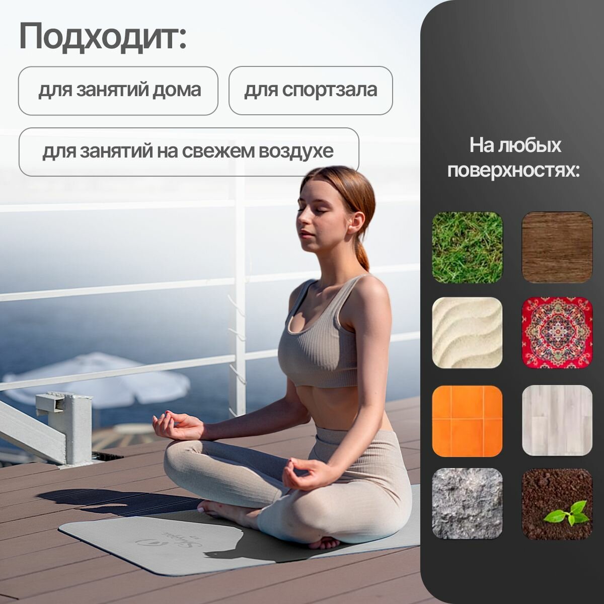 Коврик для йоги и фитнеса Shappa Fit (ТПЭ 183х61х6см ) , цвет серо-черный, с лямками для переноса , коврик для фитнеса