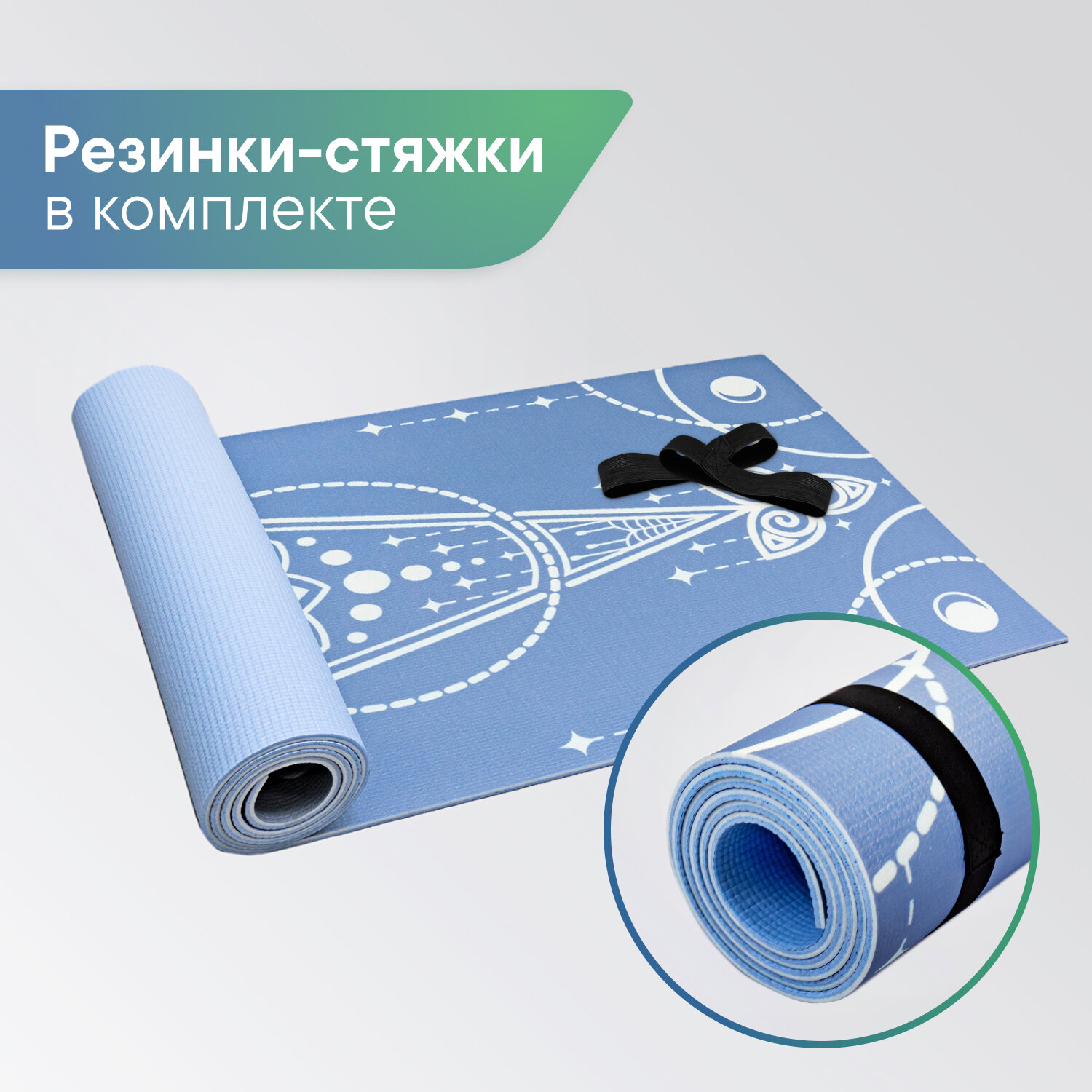 Купить Коврик для спорта VILINA спортивный коврик для йоги и фитнеса, растяжки, гимнастики "Энергия" 61х183 см\коврик для занятий спортом двухслойный с принтом Луна белый\небесно-голубой