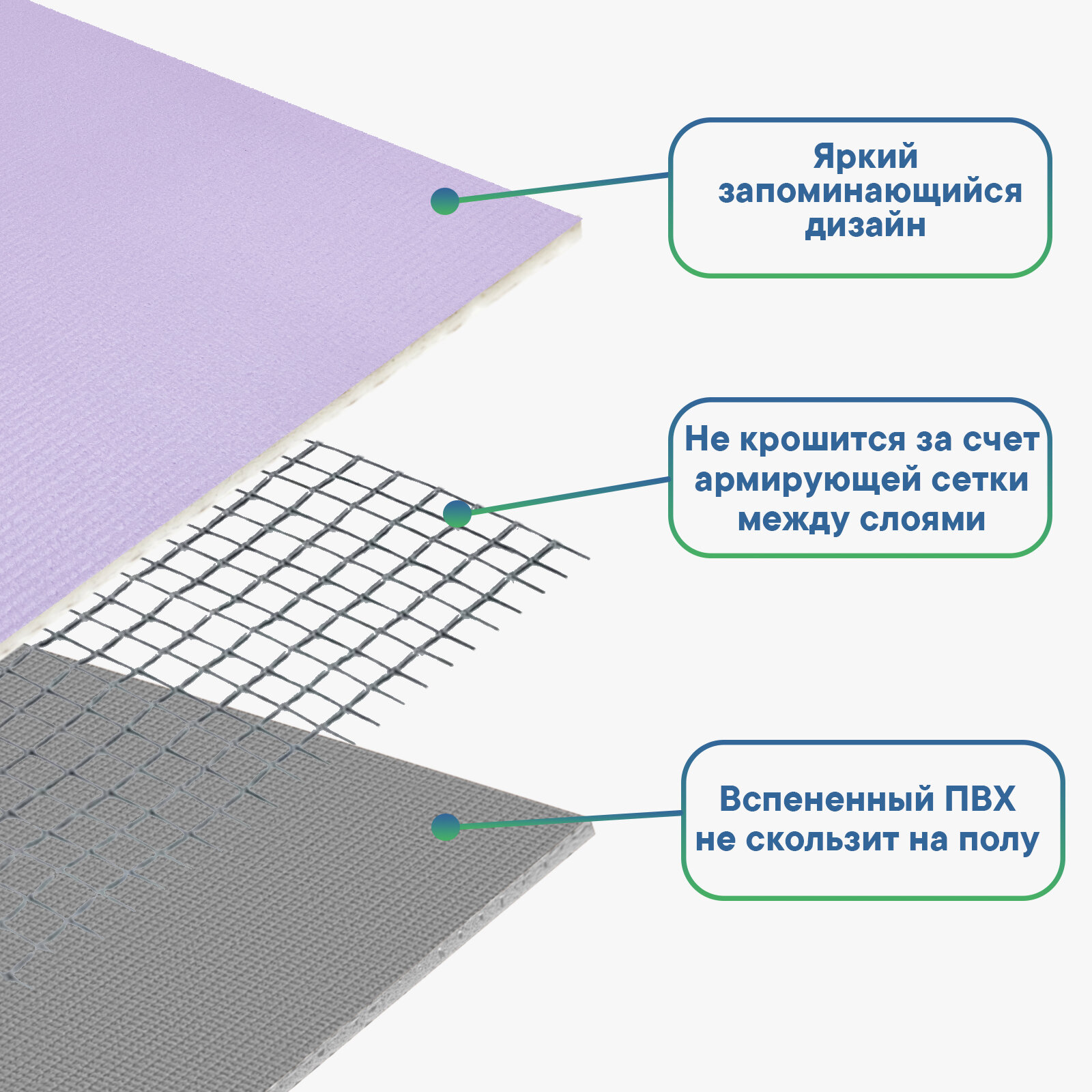СохранитьКоврик для спорта VILINA спортивный коврик для йоги и фитнеса, растяжки, гимнастики "Энергия" 61х183 см\коврик для занятий спортом двухслойный лавандовый\серый интересное: