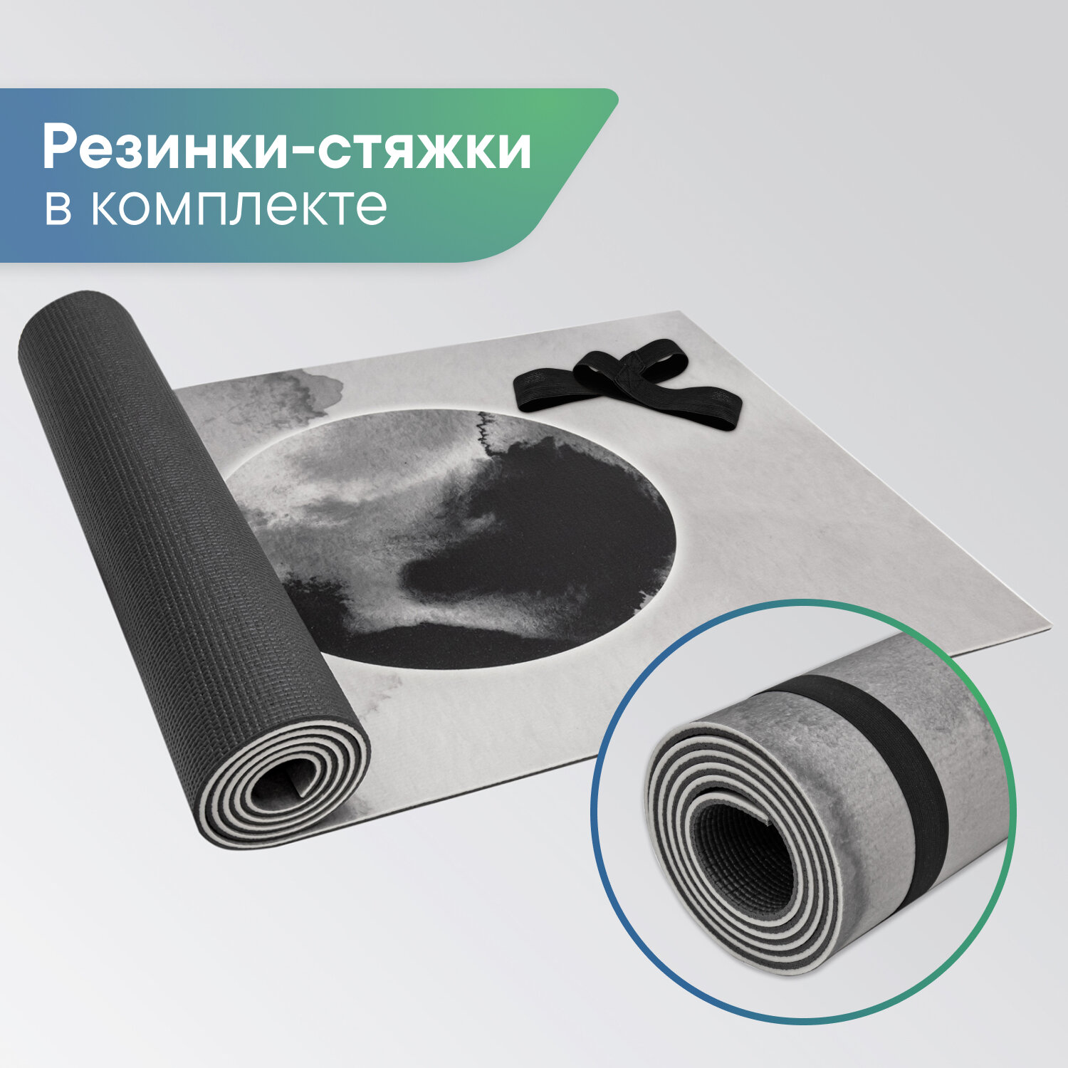 СохранитьКоврик для спорта VILINA спортивный коврик для йоги и фитнеса, растяжки, гимнастики "Энергия" 61х183 см\коврик для занятий спортом двухслойный с принтом Монохром белый\графитовый интересное: