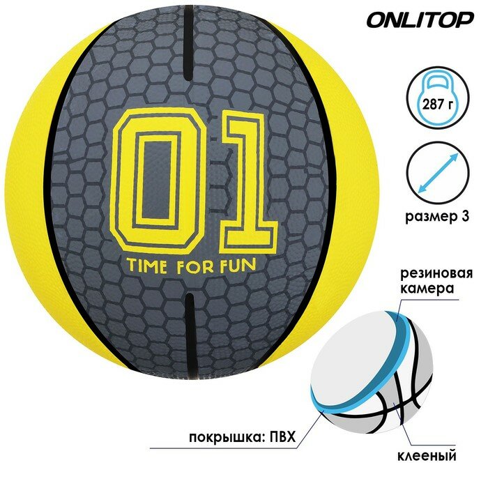 Мяч баскетбольный ONLYTOP «01», ПВХ, клееный, 8 панелей, р. 3 интересное: