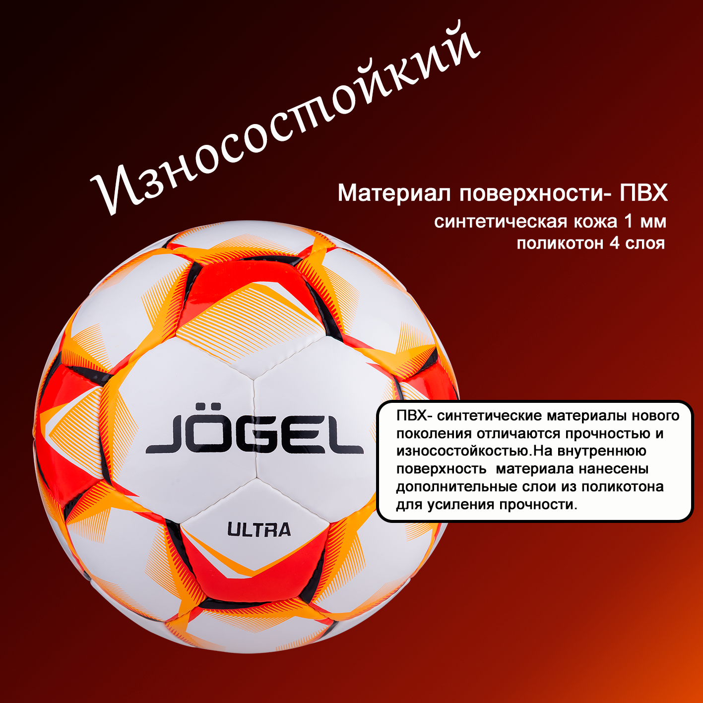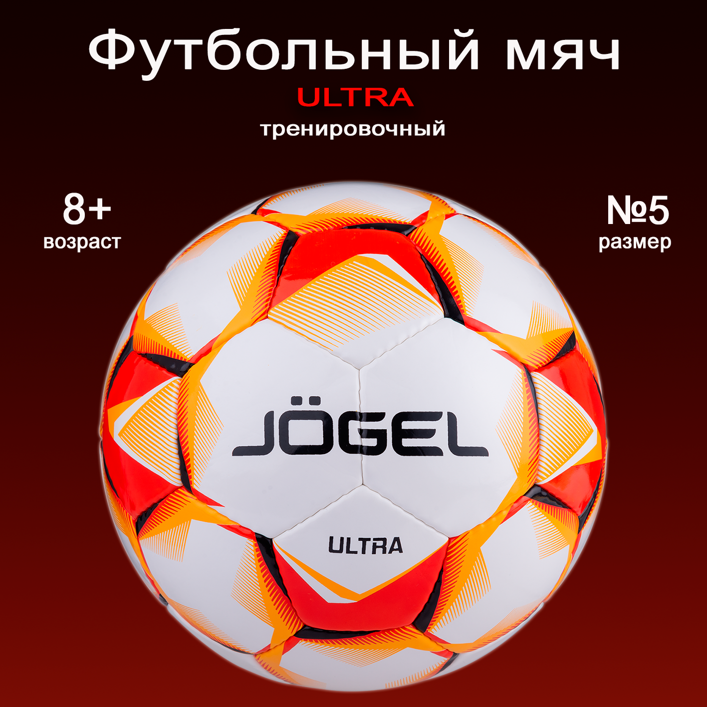 Мяч футбольный Jogel Ultra тренировочный, размер 5, цвет белый/оранжевый/красный