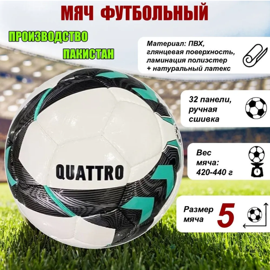 Мяч футбольный ECOS Football QUATTRO ручная сшивка, 32 панели, ПВХ, размер №5, 1 шт. интересное: