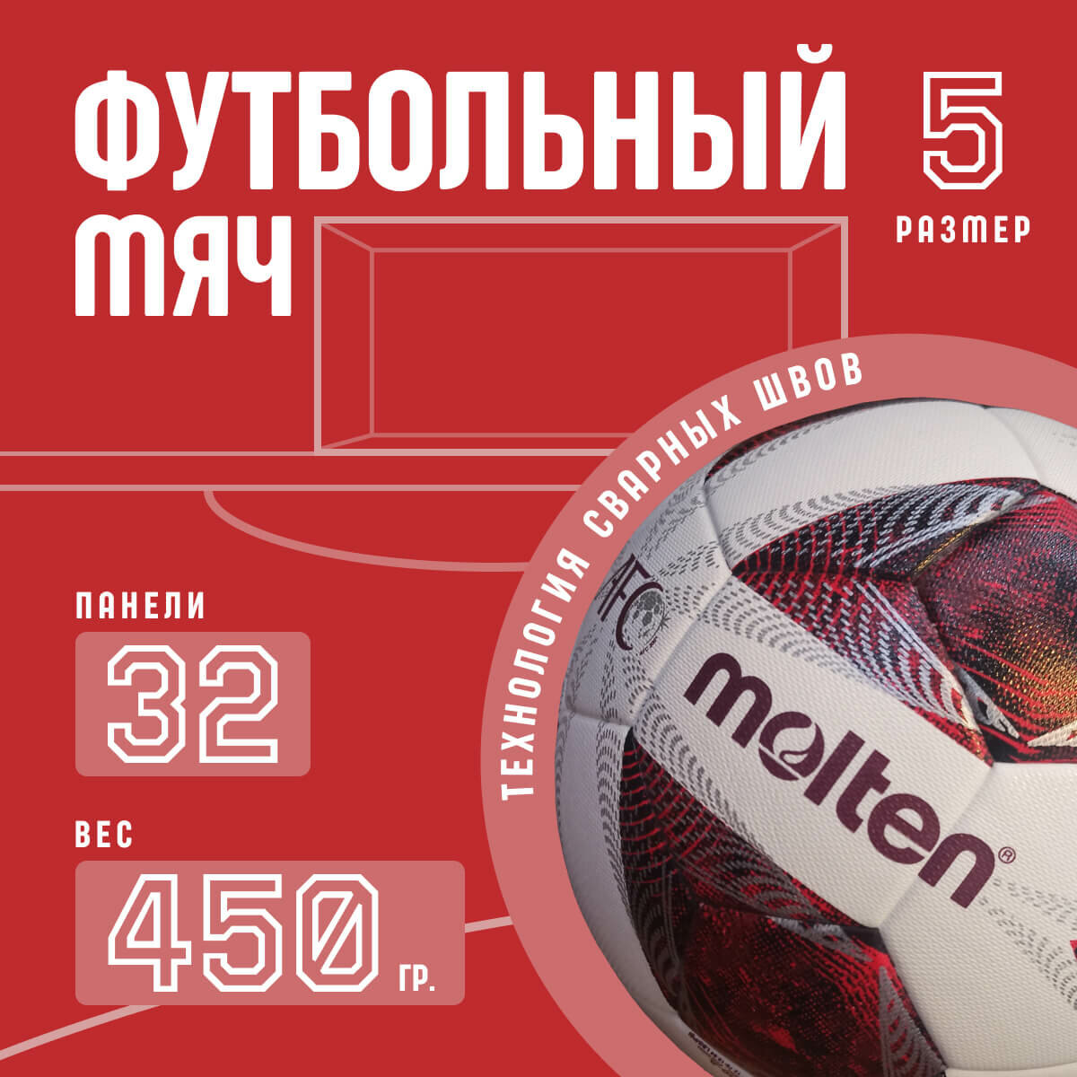 СохранитьФутбольный мяч красный Molten 5 интересное: