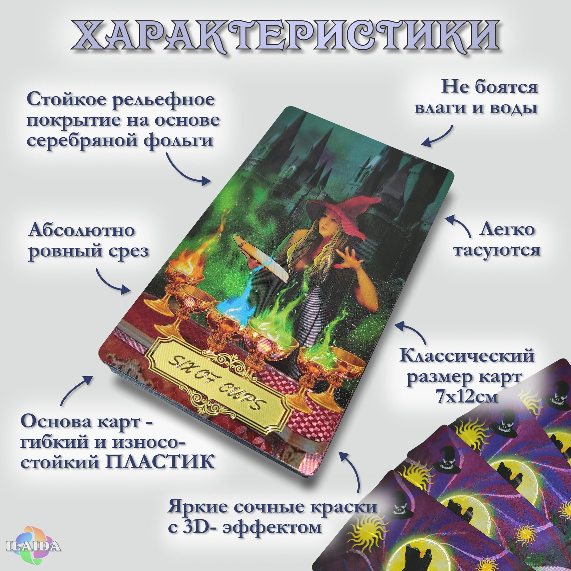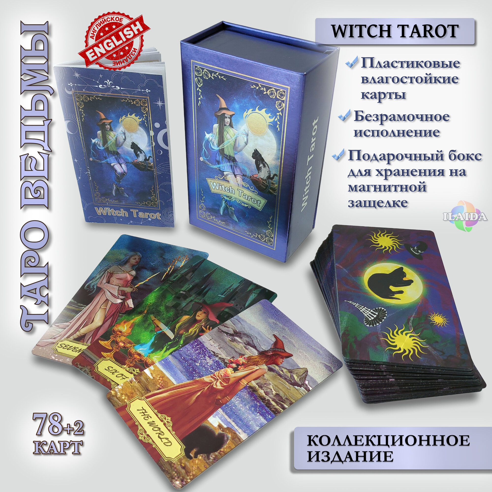 Купить Мистическое Таро Ведьмы, пластиковые, 78 карт 12х7см в подарочном боксе для хранения