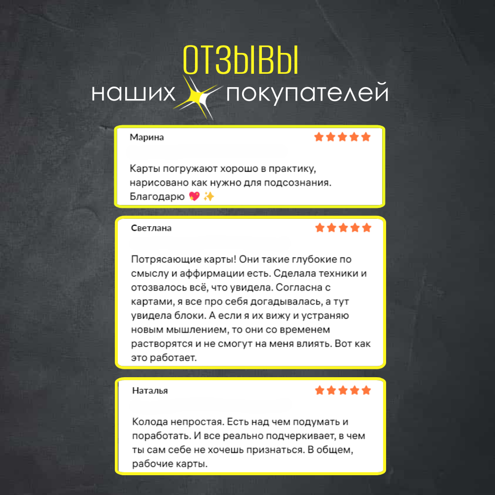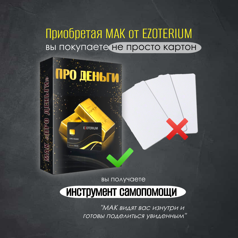 Ниже Вы можете прочитать отзывы на Метафорические универсальные ассоциативные карты МАК "Про деньги" EZOTERIUM, 50 шт., ознакомится с подробными характеристиками, посмотреть интересные обзоры и фотографии на Метафорические универсальные ассоциативные карты МАК "Про деньги" EZOTERIUM, 50 шт..