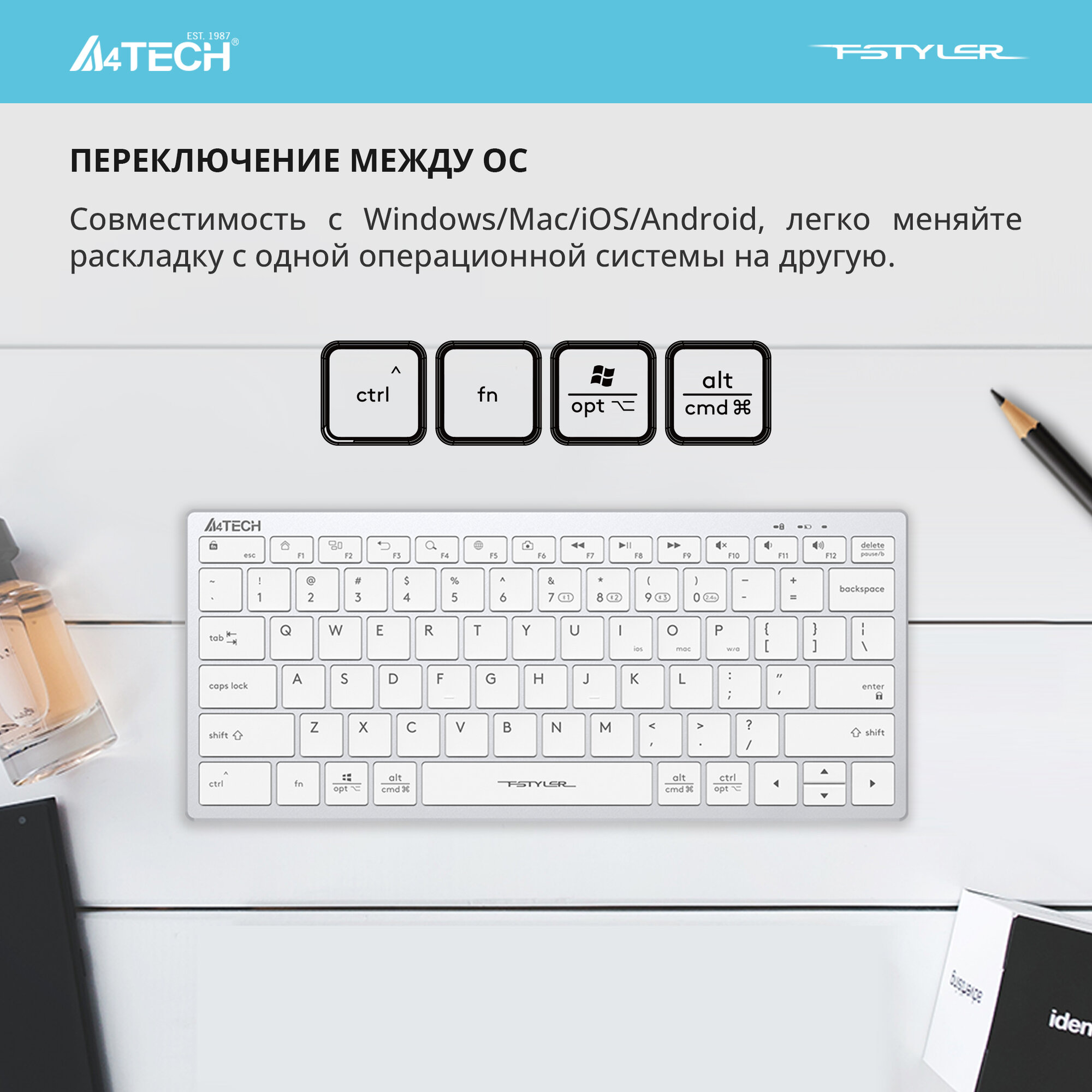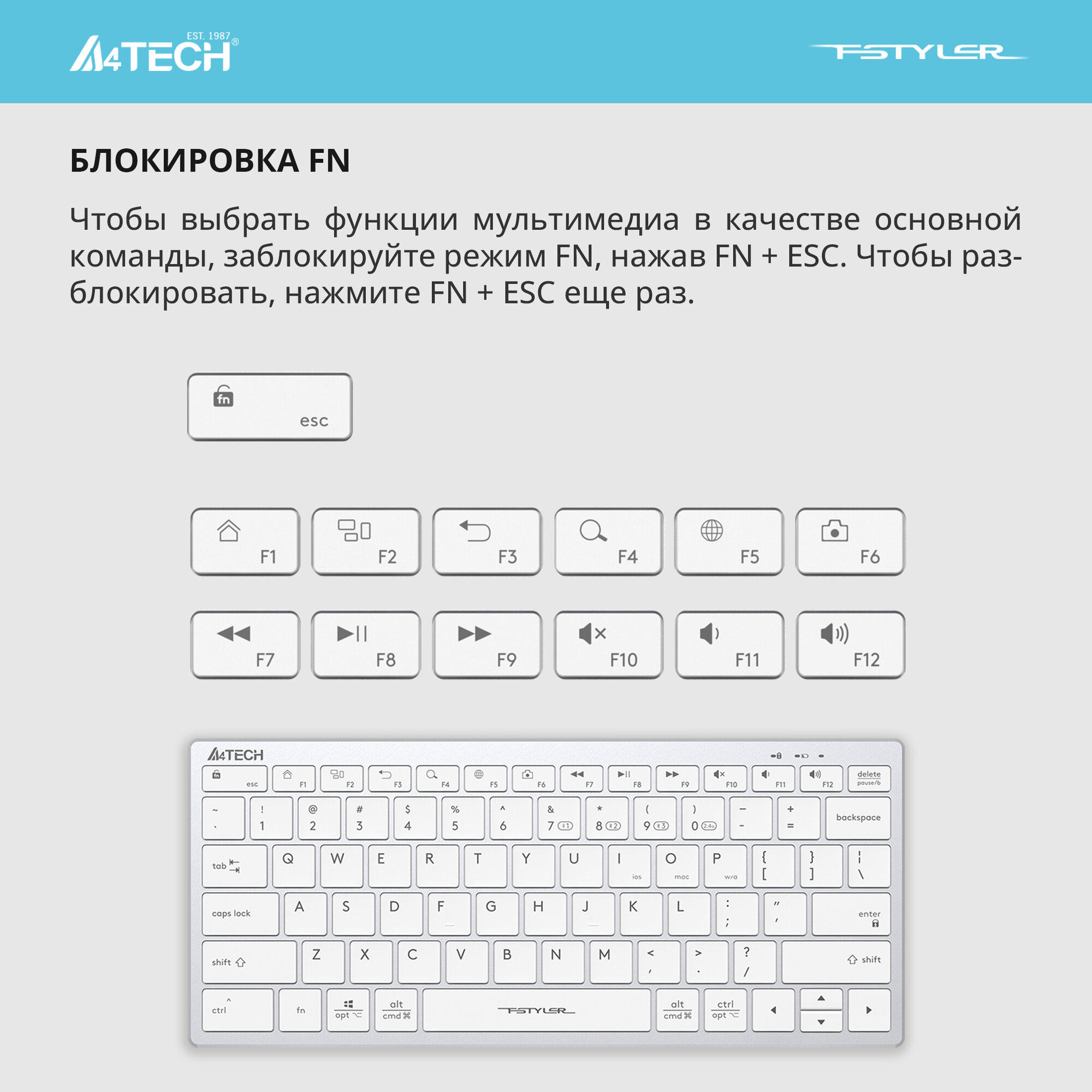 Клавиатура A4Tech Fstyler Fbx51c белый USB беспроводная BT/Radio slim Multimedia (fbx51c White) . интересное: