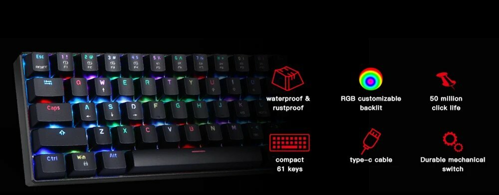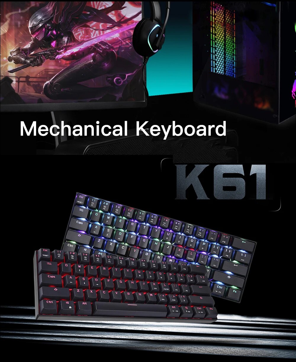 Клавиатура Motospeed CK61 Механическая Проводная игровая с RGB-подсветкой интересное: