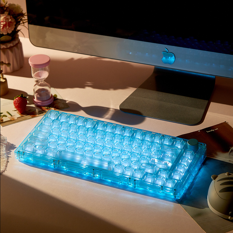 Механическая беспроводная прозрачная клавиатура Monsgeek ICE 75, 75%, Hotswap, RGB, Английская раскладка,голубой