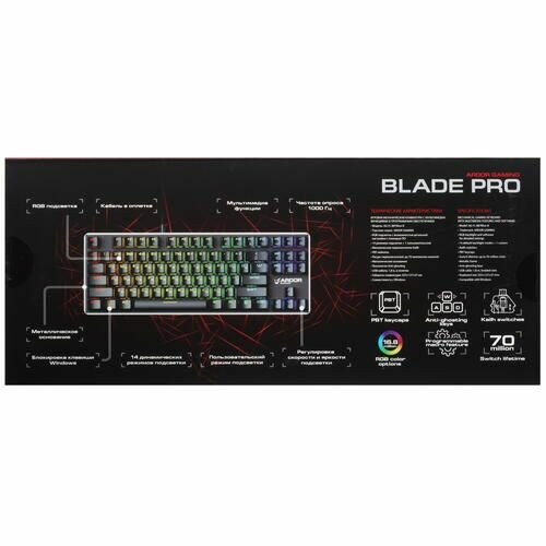 Клавиатура для компьютера, клавиатура игровая, клавиатура с подсветкой, ARDOR GAMING Blade PRO, черная
