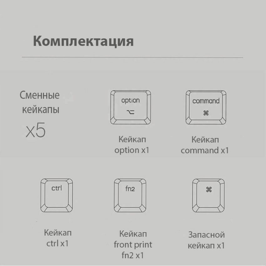 | Комплектация | 1 * Механическая клавиатура 1 * Приемник 1*2,4G 1 * ключ Съемник 1 * Съемник переключателя 1 * кабель Type-C 1 * Краткое руководство 1 * Руководство пользователя 5 * Сменный колпачок |