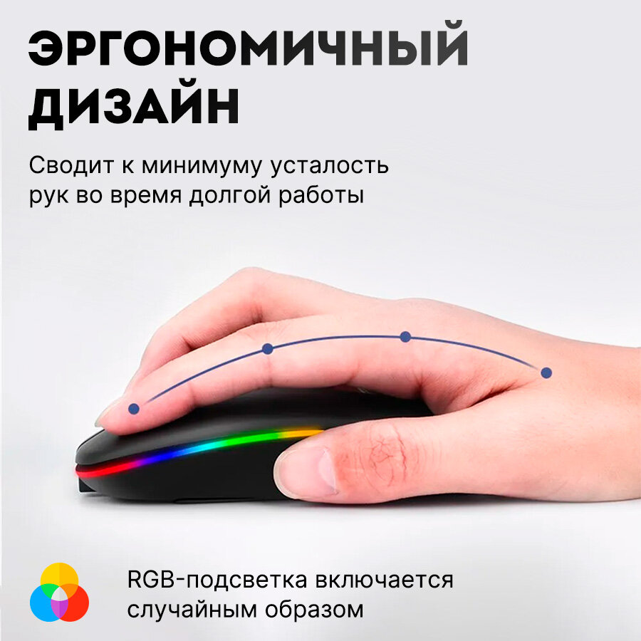 Компьютерная мышь беспроводная RGB / Бесшумная блютуз компьютерная мышь с подсветкой RGB / Bluetooth / Цвет чёрный интересное: