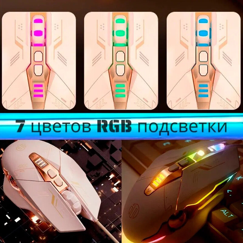 Проводная игровая бесшумная мышь Inphic PW5 , бесшумными кнопками и RGB подсветкой, Игровая компьютерная мышь , бежевый интересное: