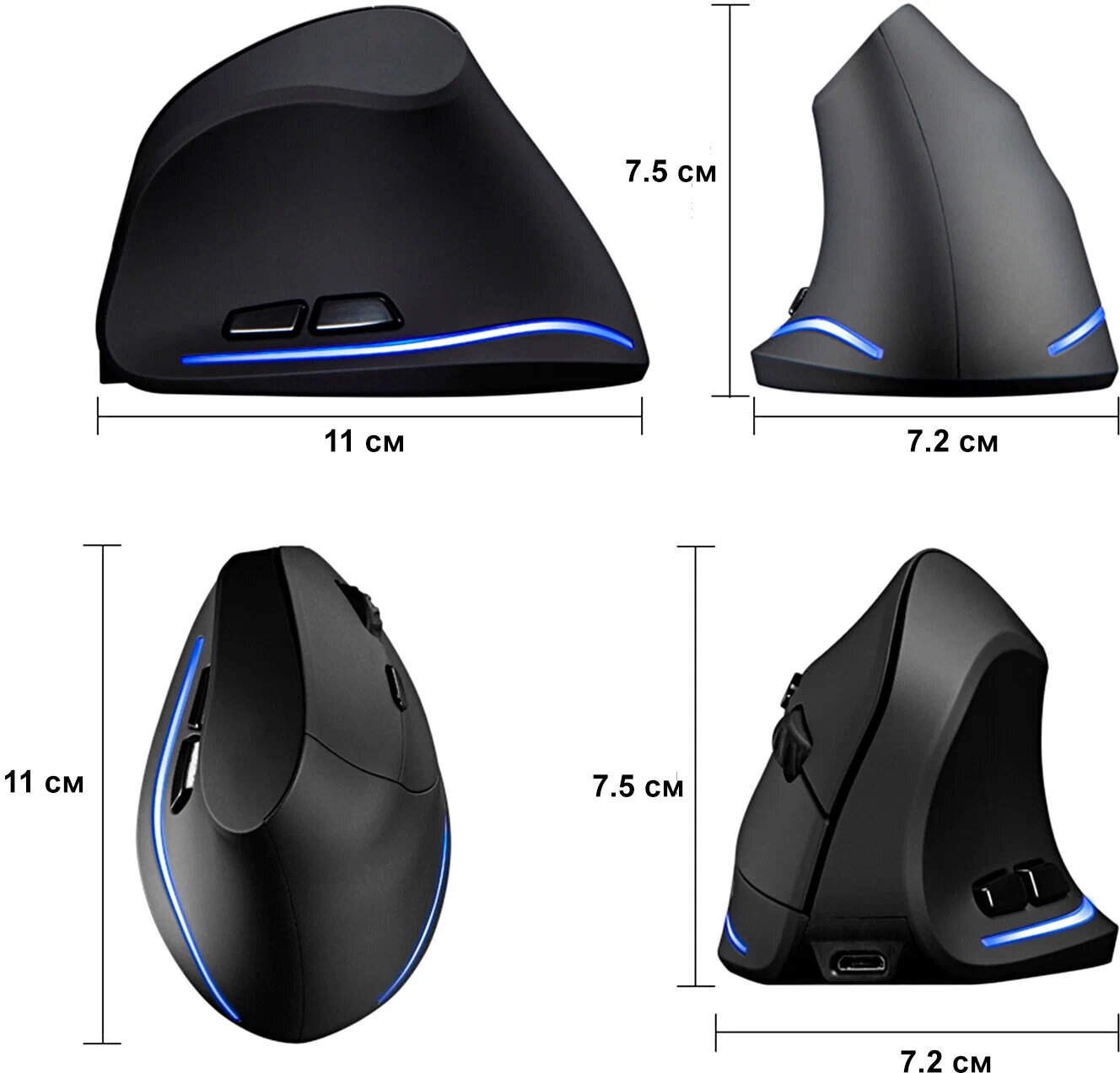 Вертикальная беспроводная мышь Mouse ZeIotes, черный интересное: