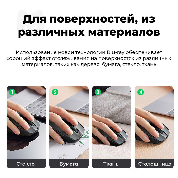 Беспроводная оптическая мышь UGREEN Ergonomic Wireless, 2.4G, 4000 DPI, цвет черный (15063) интересное: