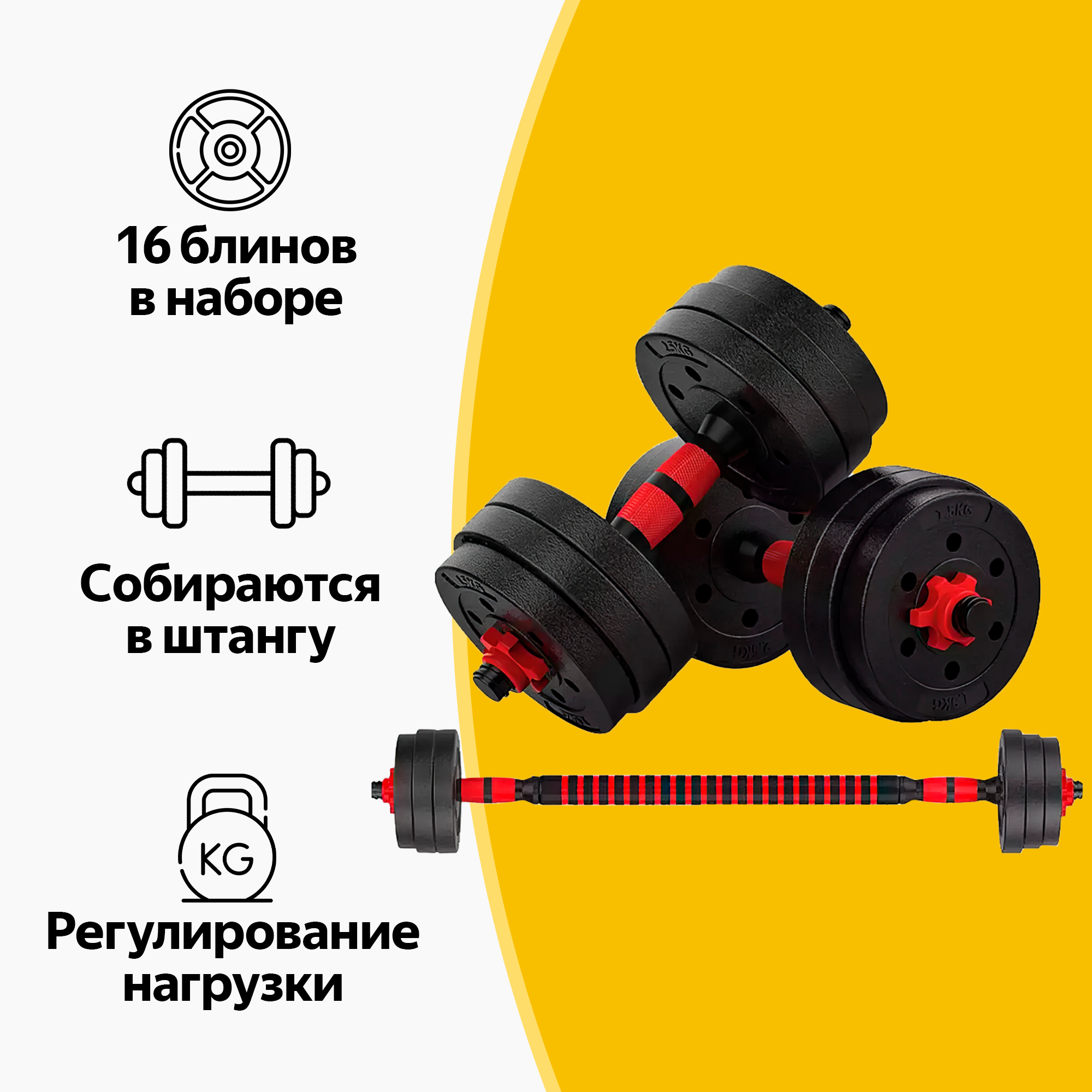 Гантели разборные 40 кг (2х20 кг) со штангой, трансформер интересное: