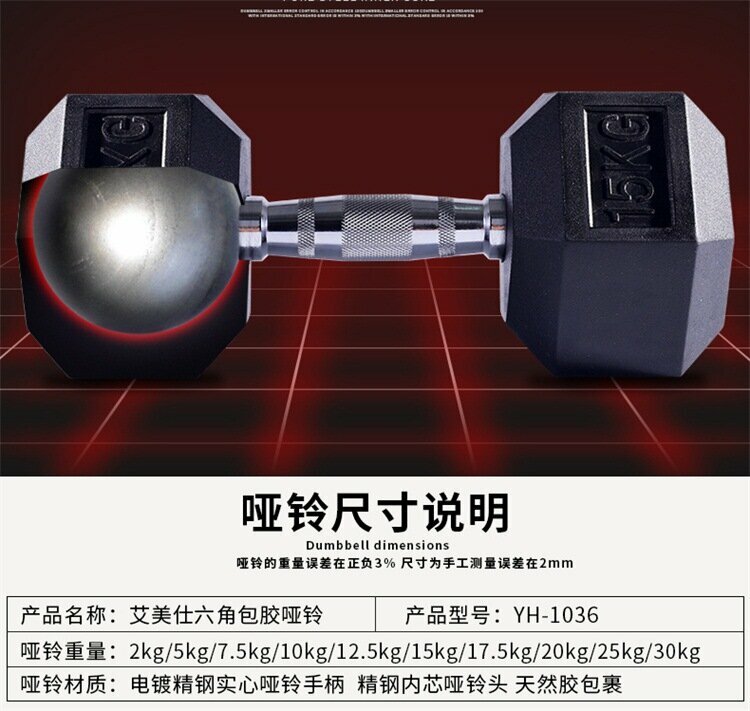 Купить Гантели Aimeishi, чугунные, шестиугольные, с резиновым покрытием, 10 и 15 кг