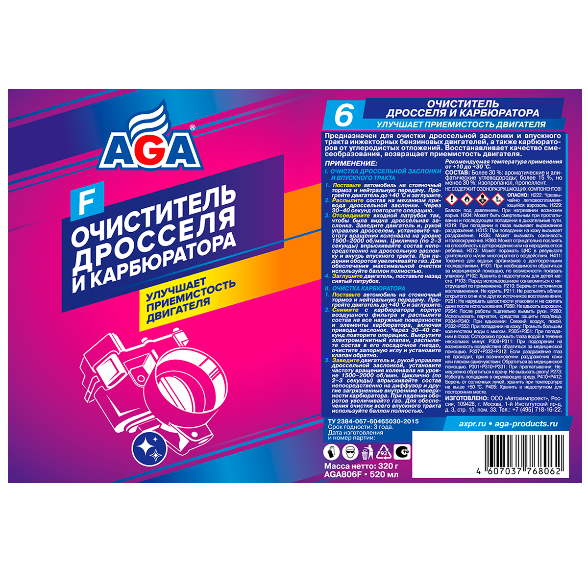 | Подробная комплектация | AGA Очиститель дросселя и карбюратора (520ml), шт |