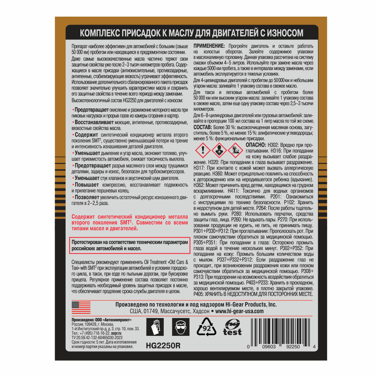 Комплекс суперприсадок к маслу для старых двигателей с SMT2 HG2250R интересное: