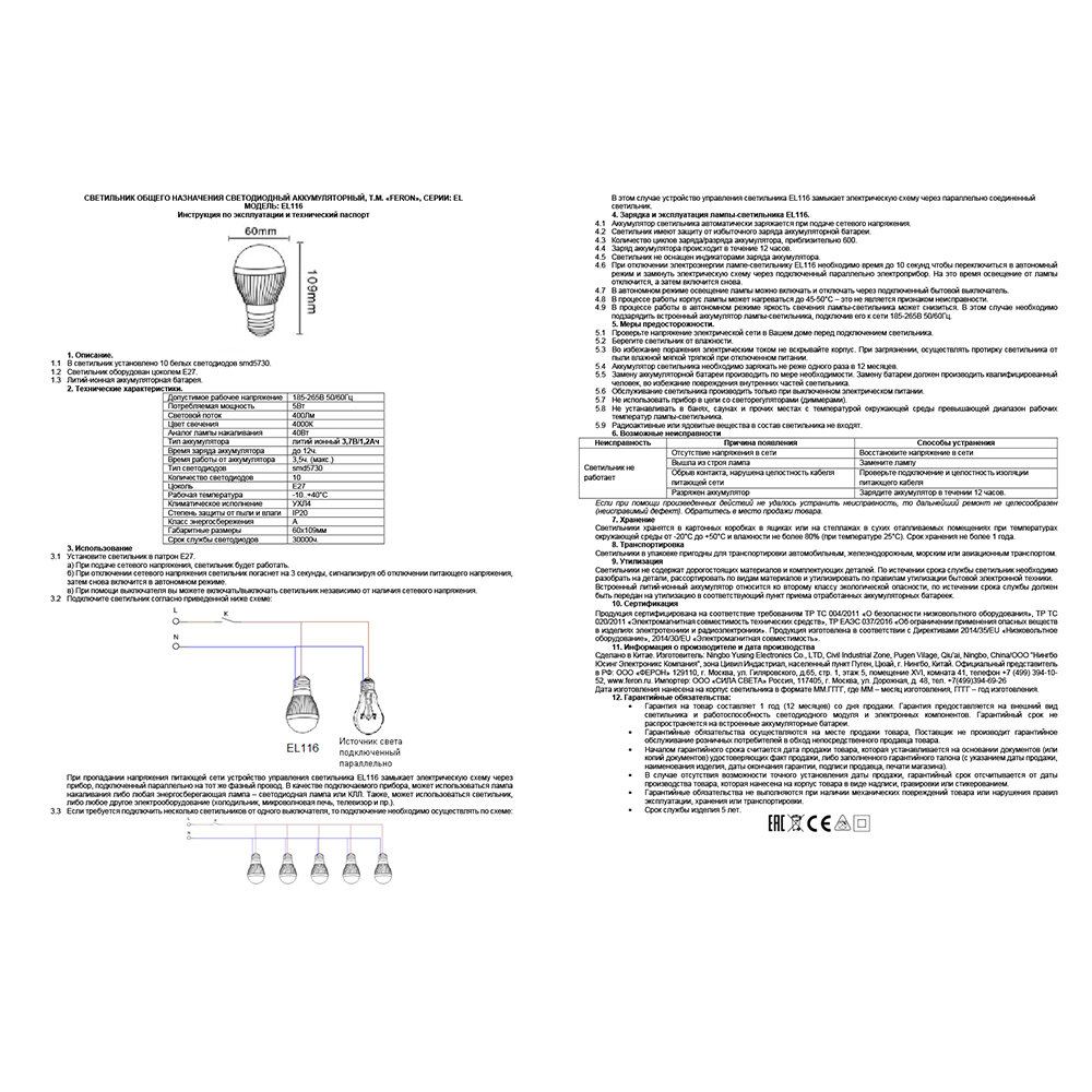 Светильник светодиодный аккумуляторный LED 5 Вт Е27 AC/DC (литий-ионная батарея), 1 шт. в заказе интересное: