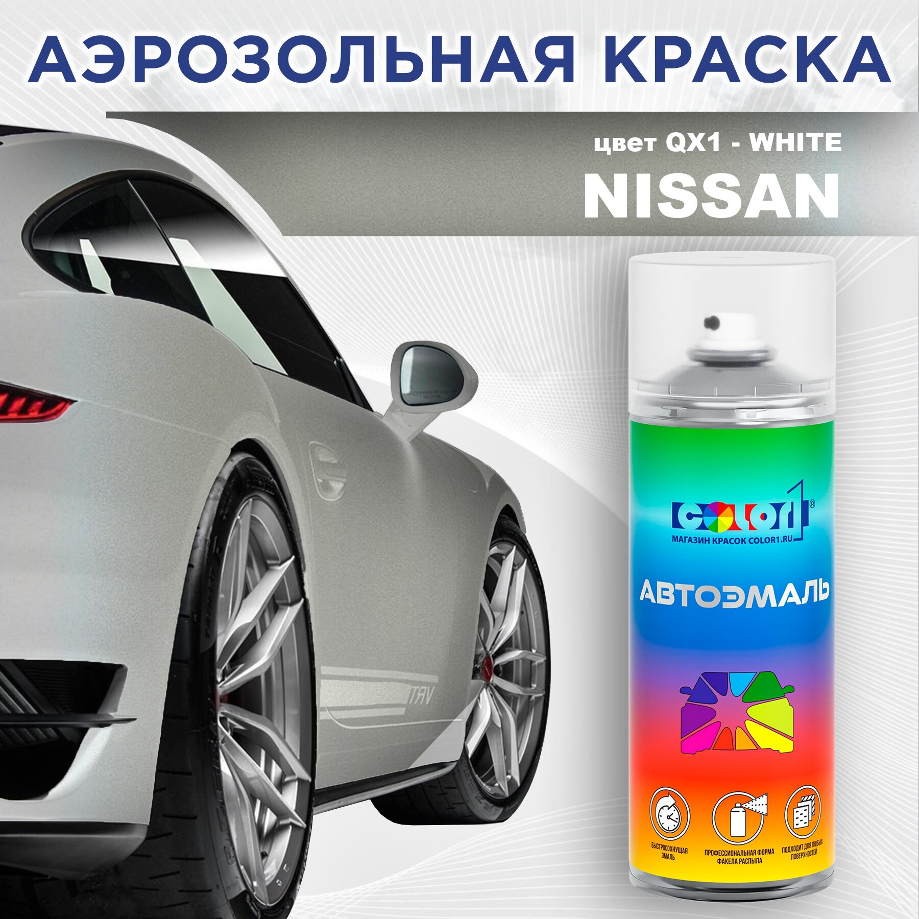 Аэрозольная краска COLOR1 для NISSAN, цвет QX1 - WHITE интересное: