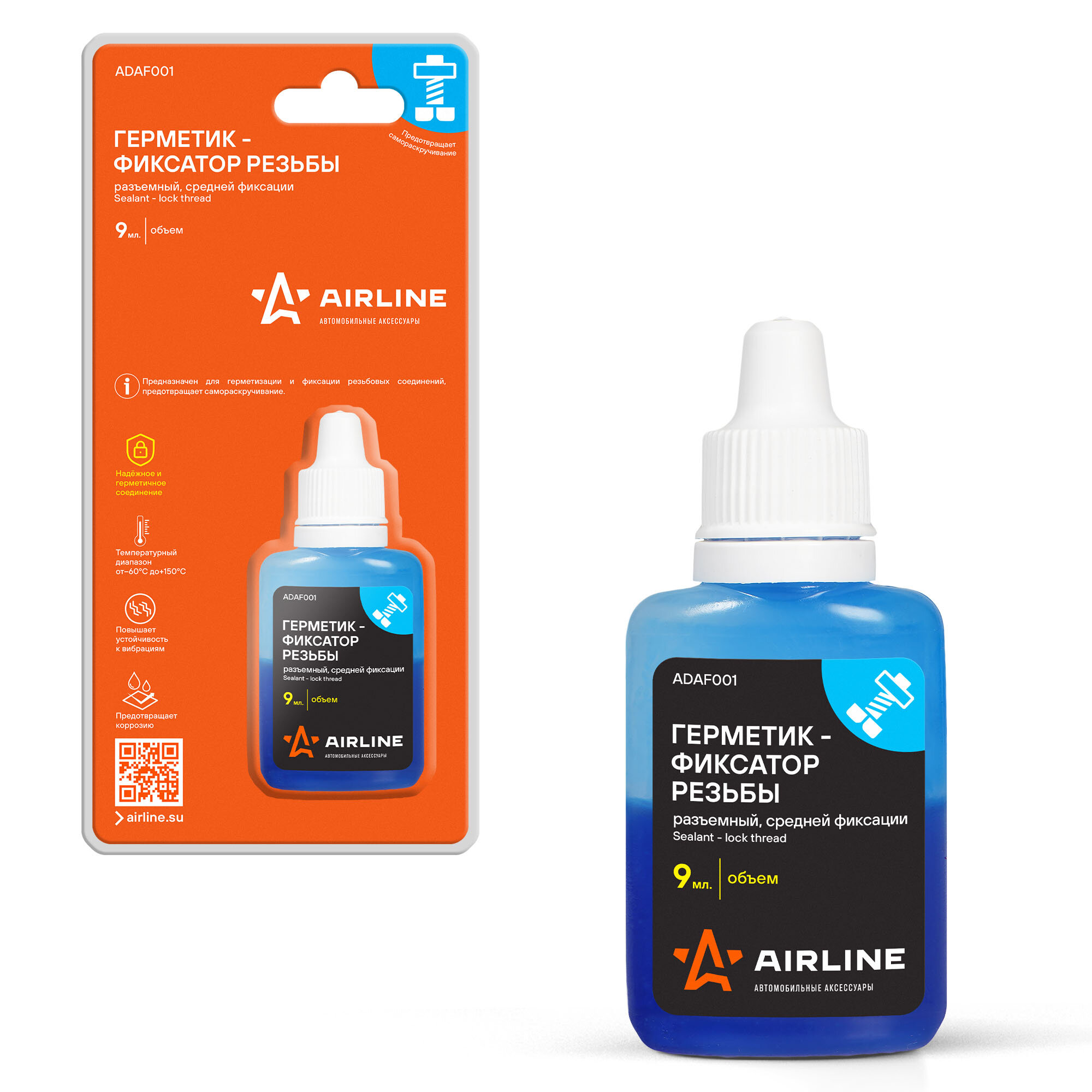 Купить Герметик-фиксатор резьбы, разъемный, средней фиксации, 9 мл., одност.блистер ADAF001 AIRLINE