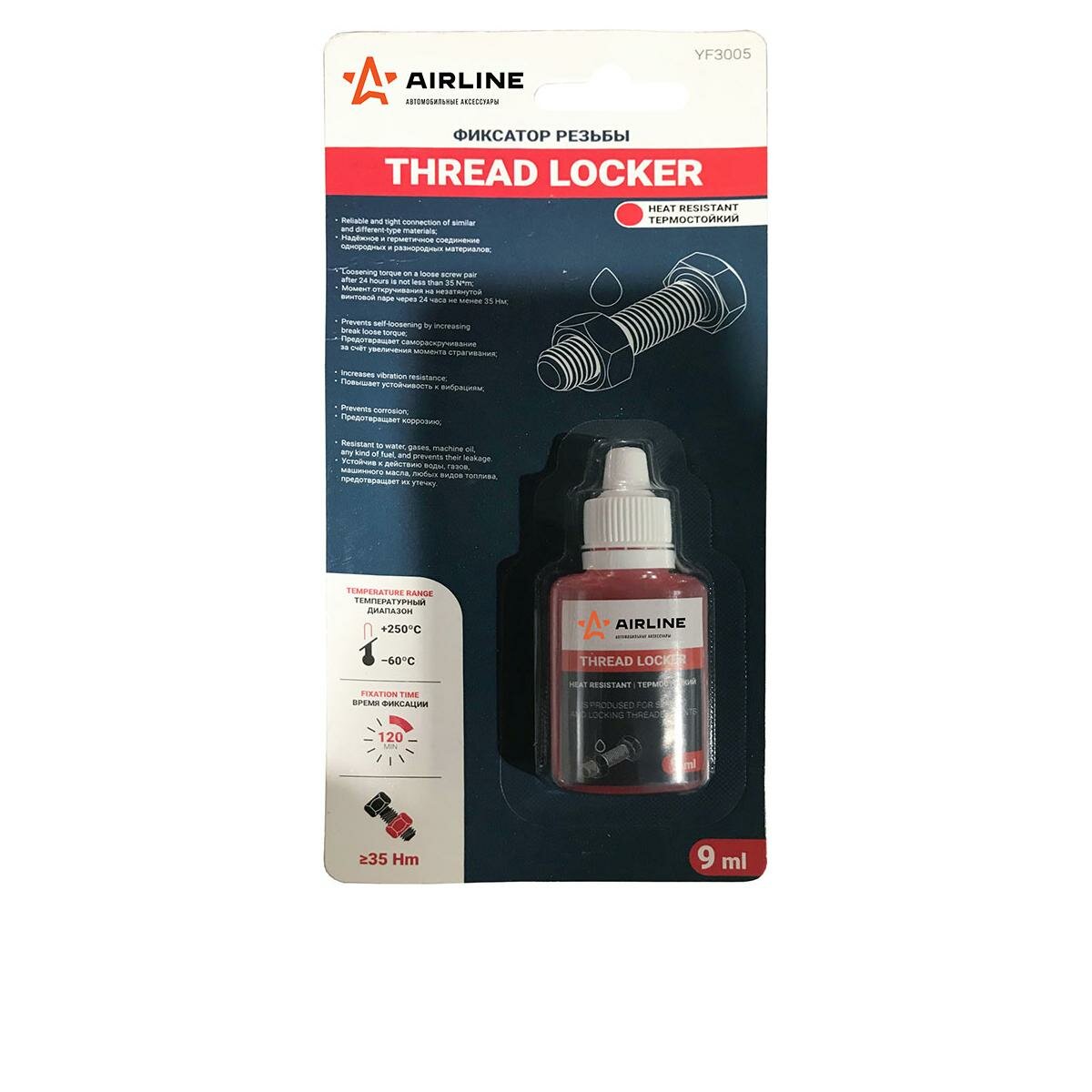 Фиксатор резьбы "AIRLINE" неразъемный, высокой фиксации, 9 мл., одност.блистер