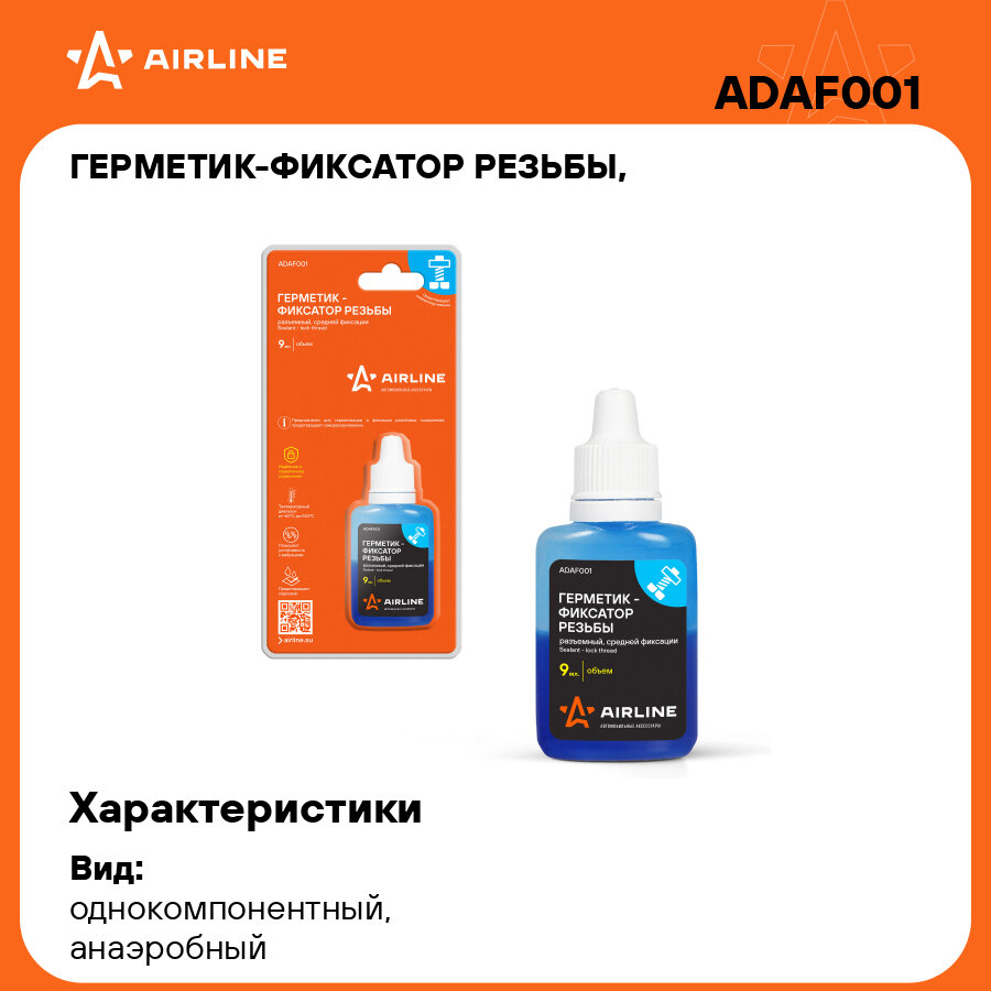 Герметик-фиксатор резьбы, разъемный, средней фиксации, 9 мл., одност.блистер ADAF001 AIRLINE интересное: