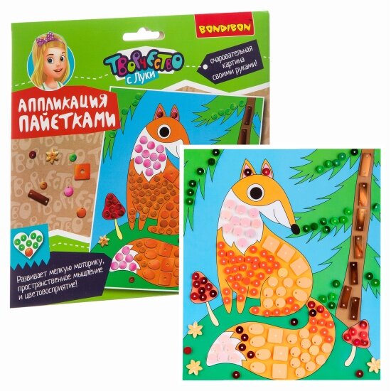 Набор для творчества BONDIBON ВВ3047 Аппликация пайетками. Лисица интересное:
