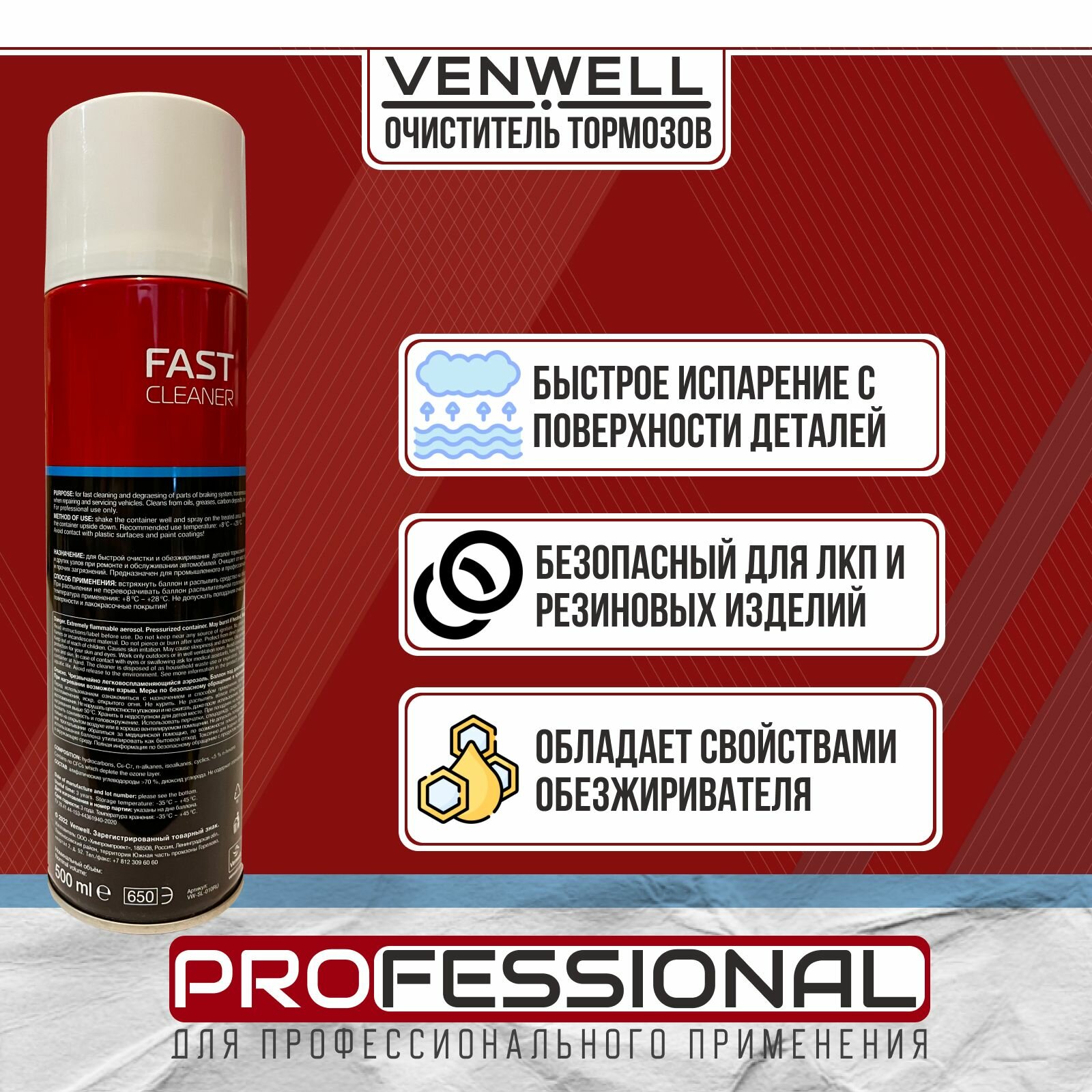 Очиститель тормозов Venwell FAST CLEANER , 650 мл / VW-SL-010RU - 6ШТ