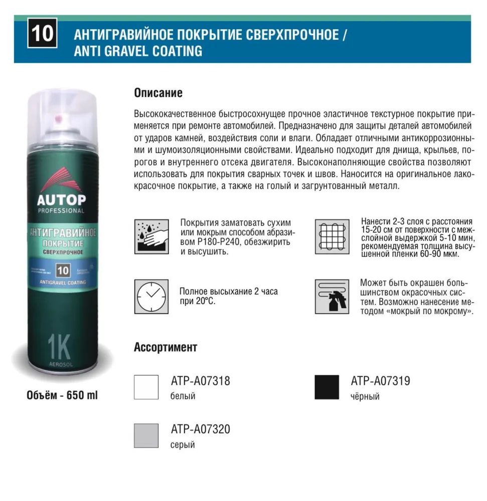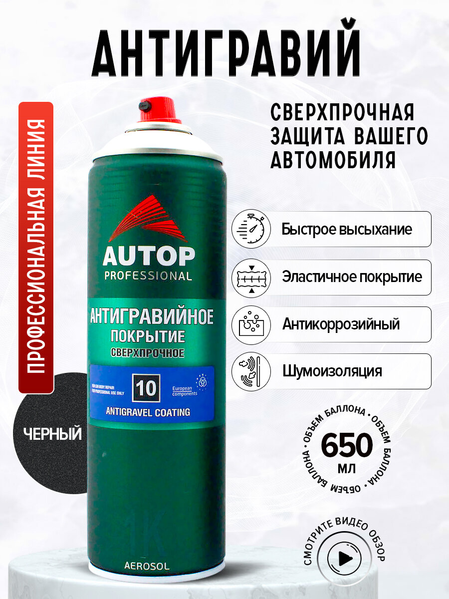 AP010 Антигравийное покрытие "Autop" №10 "Anti Gravel Coating" Черное, сверхпрочное аэрозольное, 650 мл интересное: