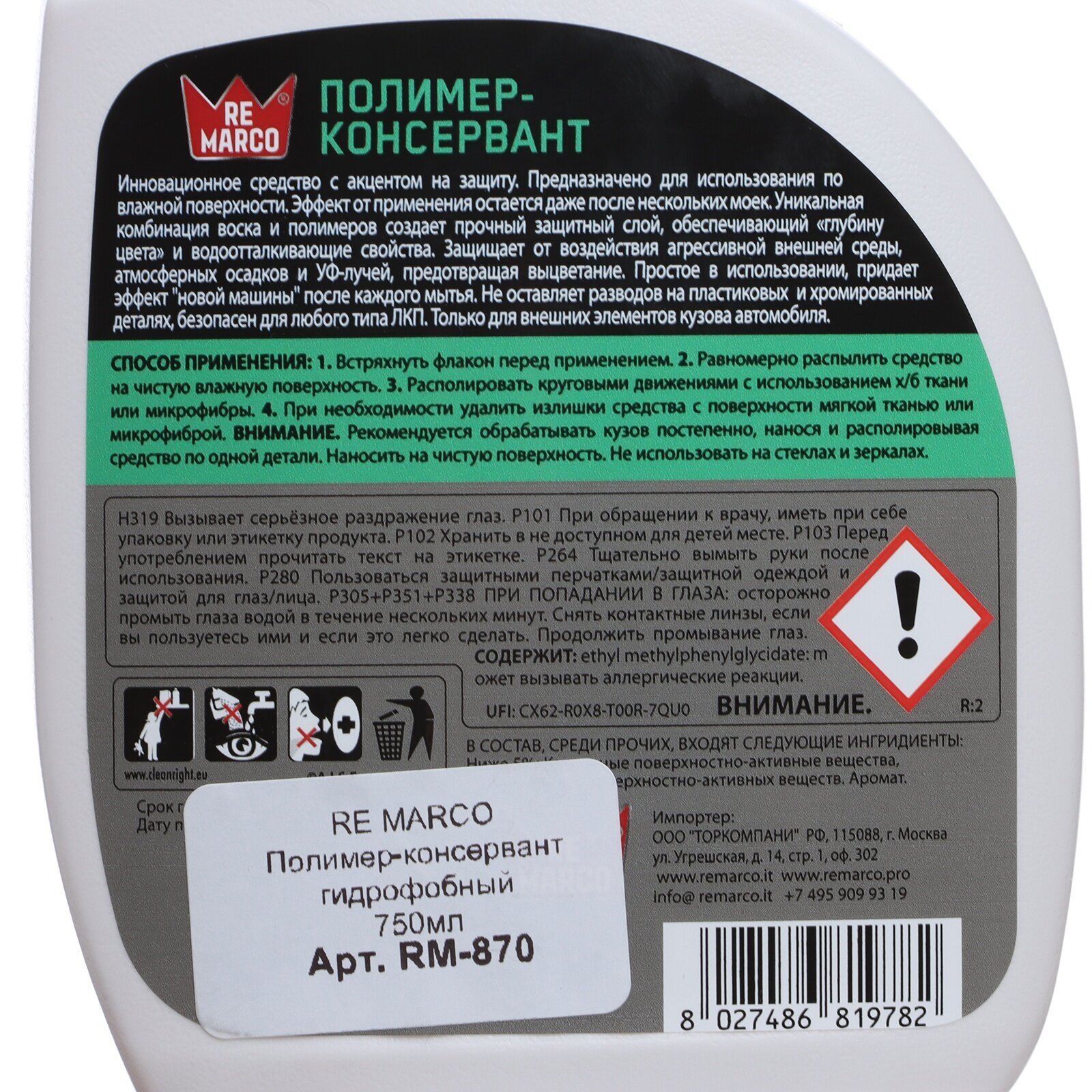 Купить Полимер-консервант гидрофобный, триггер, 750 мл