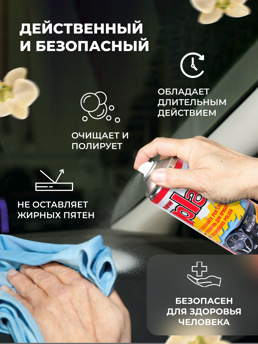 | Способ применения | Распылить на обрабатываемую поверхность, отполировать до блеска сухой, мягкой тканью |