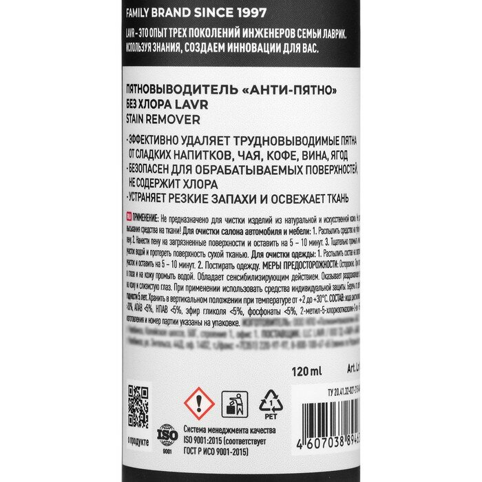 LAVR Пятновыводитель LAVR "Анти-Пятно" без хлора, 120 мл, спрей, Ln1465 интересное: