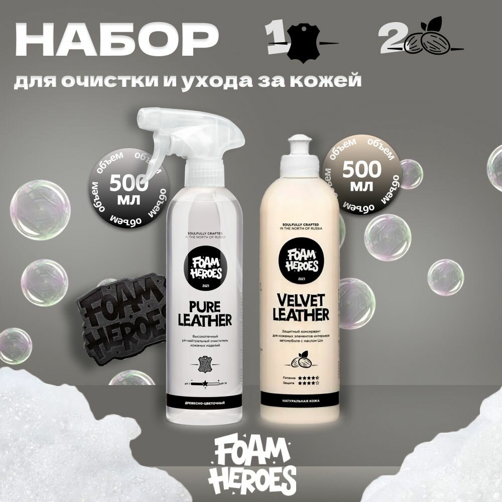 Купить Pure Leather Очиститель кожи, 500мл + Velvet Leather Кондиционер для кожи, 500мл Foam Heroes