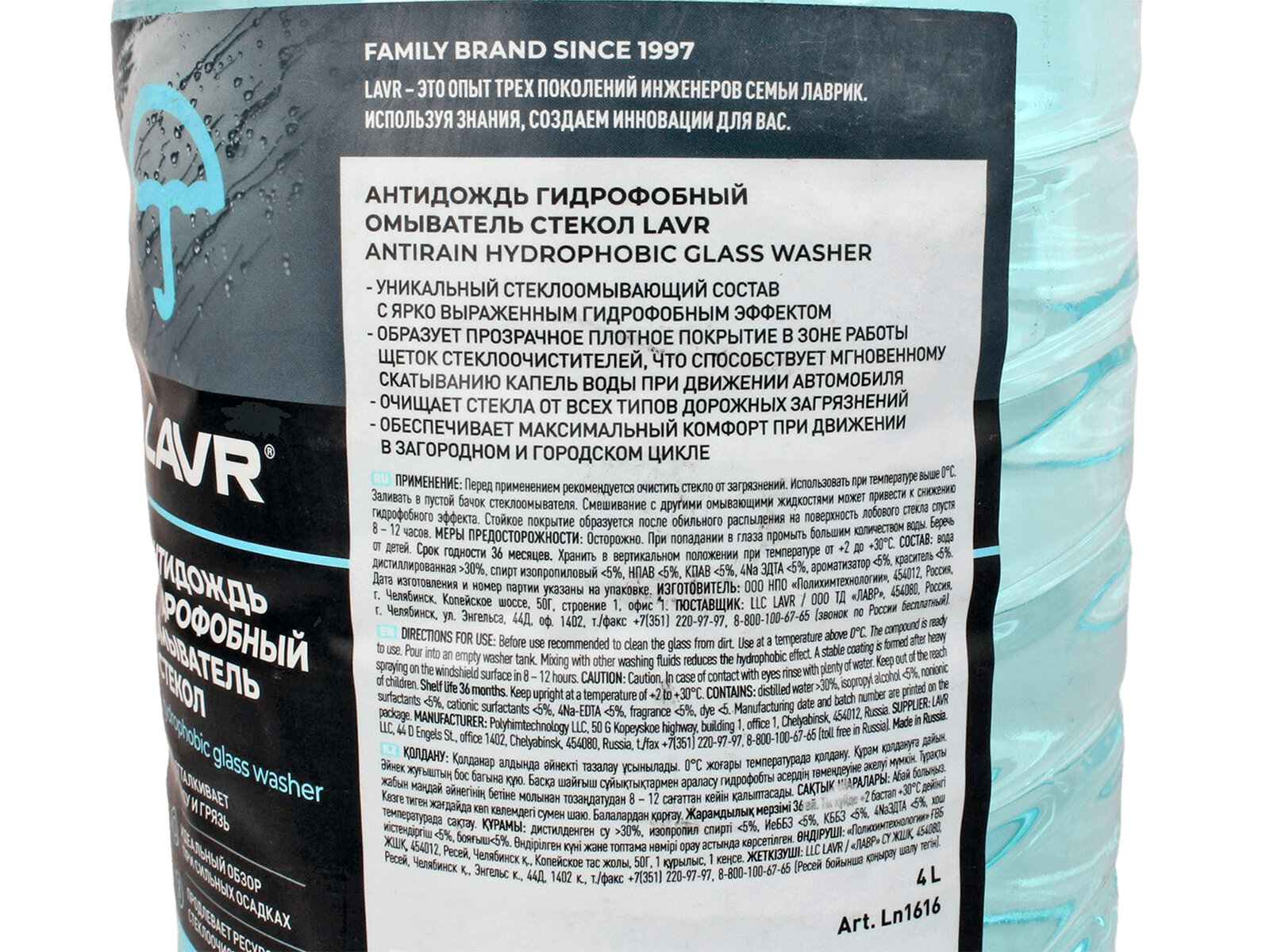Антидождь гидрофобный омыватель стекол LAVR, 4 л / Ln1616 интересное: