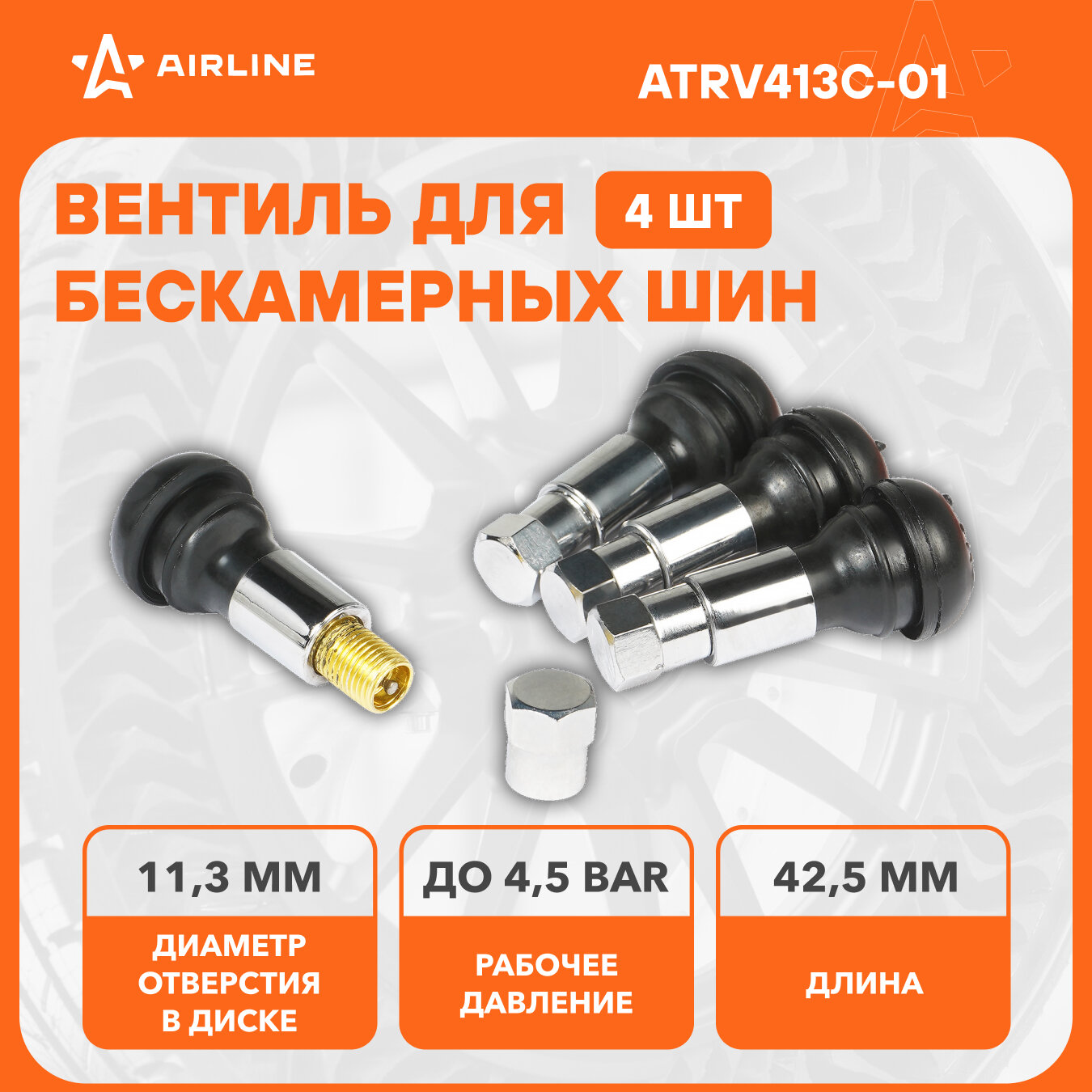 Вентиль для б/к шин TR413C, 4 шт. ATRV413C-01 AIRLINE интересное: