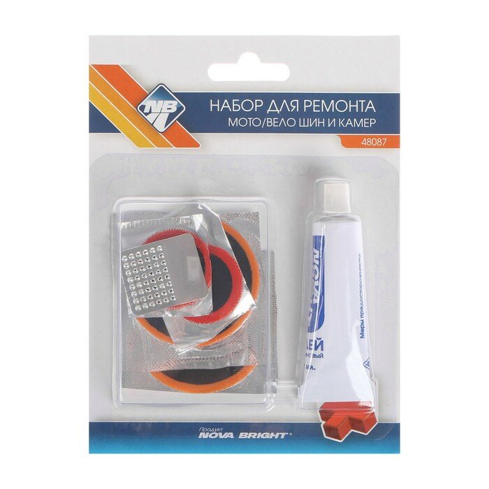 Купить Набор заплаток для ремонта камер Nova Bright, 2 шт - 50 мм, 2 шт - 25 мм, клей, рашпиль