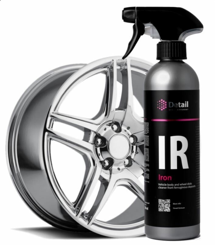 | Дополнительная информация | Уникальная pH-сбалансированная формула состава Iron (IR) безопасна для различных поверхностей автомобиля. Iron (IR) эффективно справляется с дорожным налетом на ЛКП, стёклах и зеркалах. Состав разработан специально для очистки колесных дисков. Iron (IR) незаменим для удаления въевшейся тормозной пыли на дисках, которую невозможно полностью очистить обычными средствами. Iron (IR) расщепляет загрязнение за несколько минут, по завершении приобретая малиновый (марганцевый) оттенок. |
