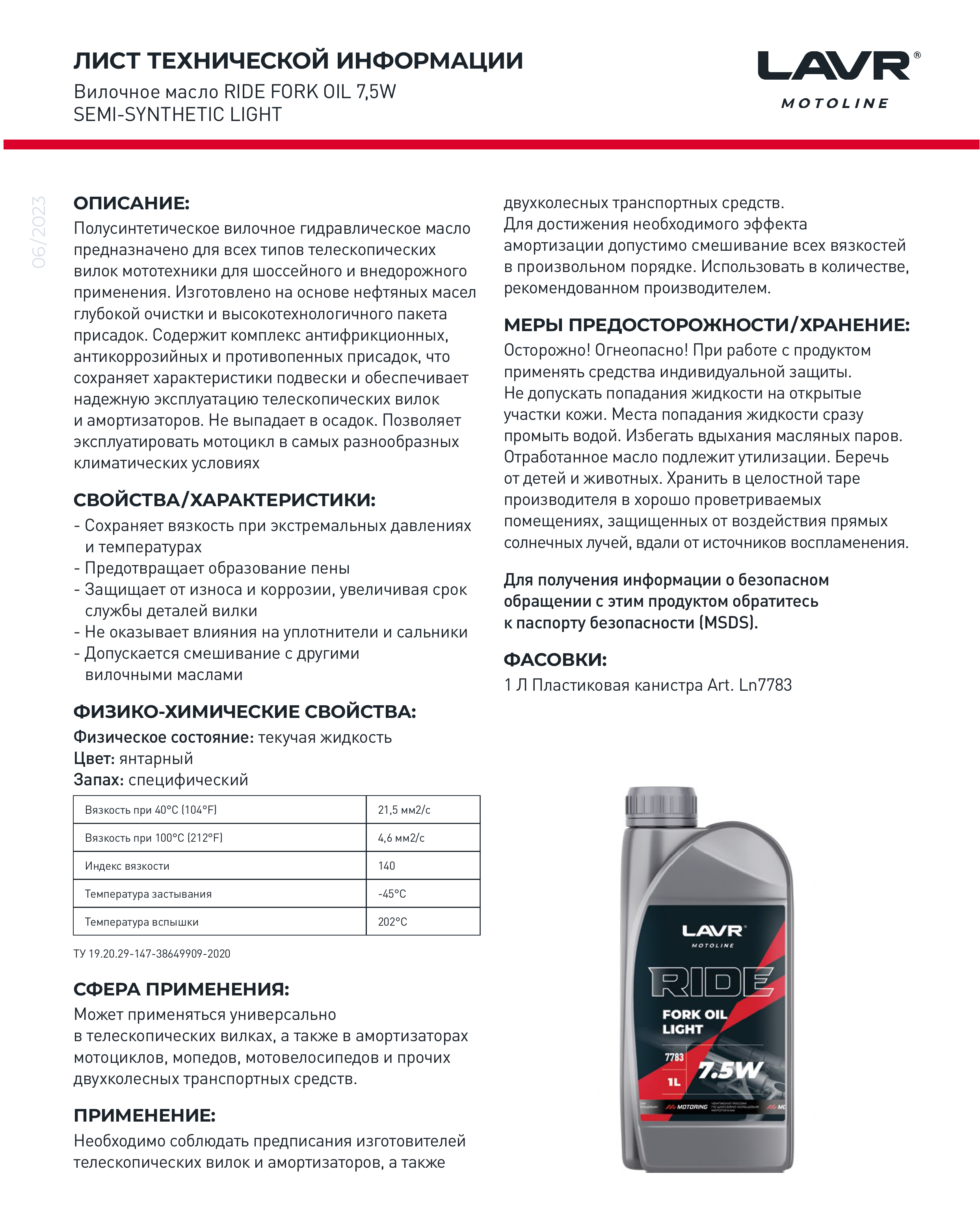 LAVR MOTO Вилочное масло RIDE Fork oil 7.5W 1л интересное: