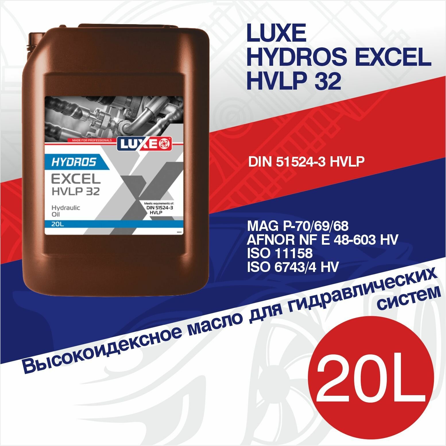 Масло гидравлическое LUXE HYDROS EXCEL HVLP 32, 20 л интересное: