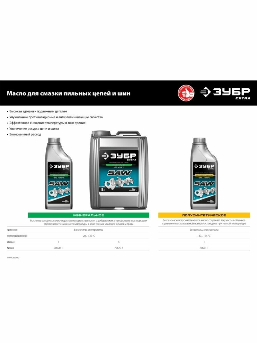 Ниже Вы можете прочитать отзывы на ЗУБР EXTRA цепное минеральное масло для бензо и электропил, 5 л 70620-5, ознакомится с подробными характеристиками, посмотреть интересные обзоры и фотографии на ЗУБР EXTRA цепное минеральное масло для бензо и электропил, 5 л 70620-5.