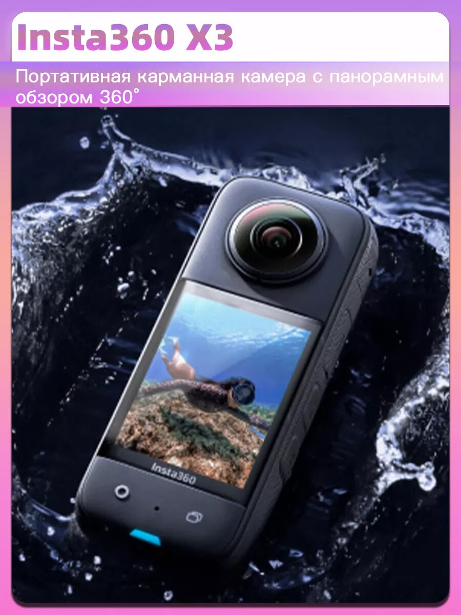 Insta360 X3 - панорамная экшн камера 360 градусов (разрешение 5,7K 30/60 FPS, влагозащита, сенсорный экран)