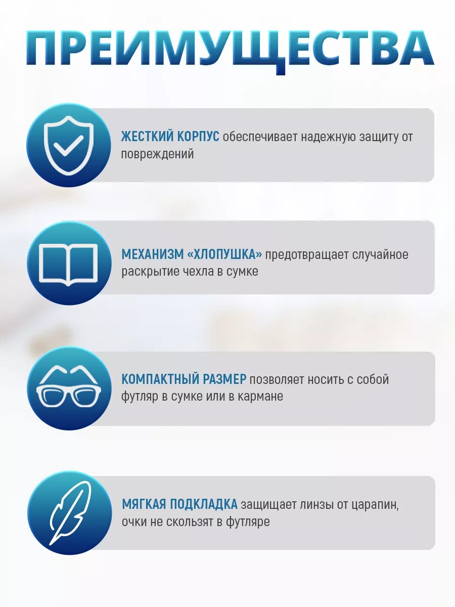 Футляр для очков жесткий, чехол для очков хлопушка, цвет темно-синий